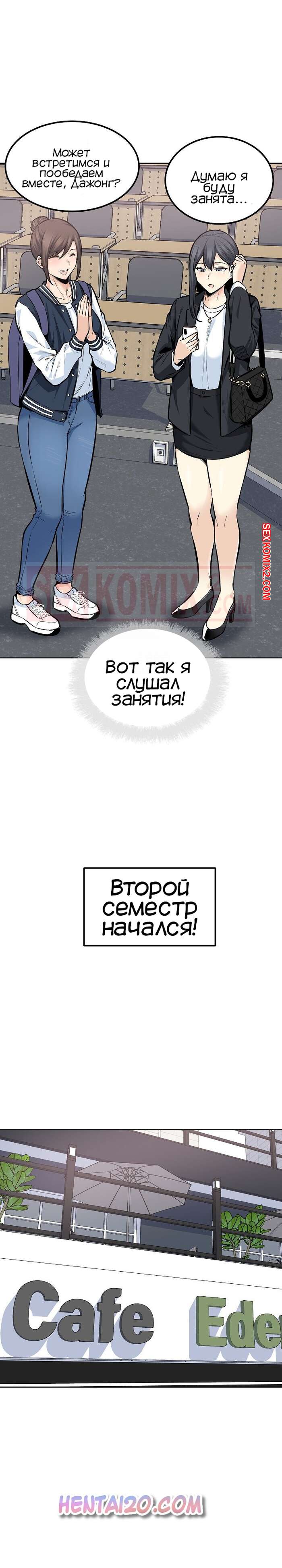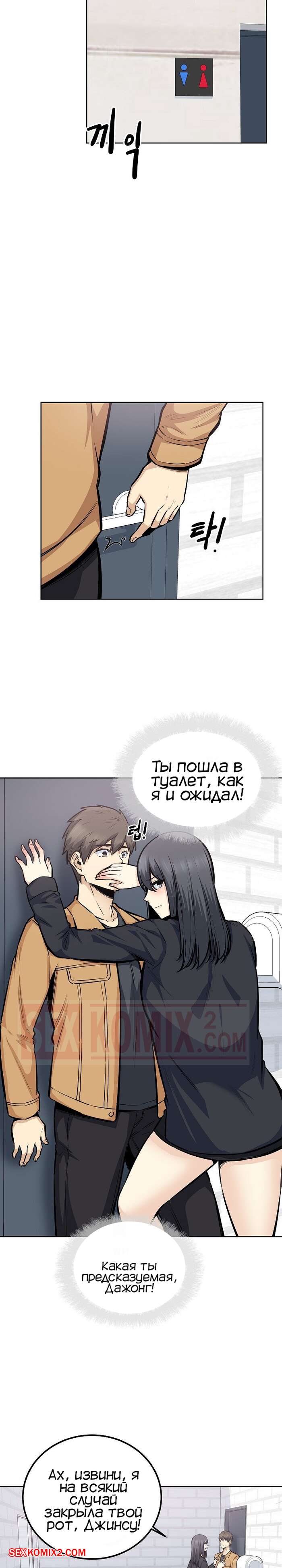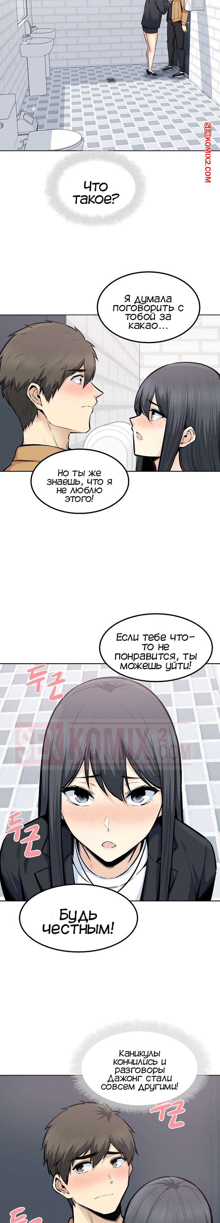 Порно комикс Извини, это моя комната. Часть 87. The Ark Is Me Ребята снова вернулись в колледж и им сразу же поручили командное задание, где парнишка оказался в команде с двумя своими подругами. В один из моментов совместной работы, парень отошел в туалет, где его ждала Дажонг, жаждущая отсосать его большой хуй.
