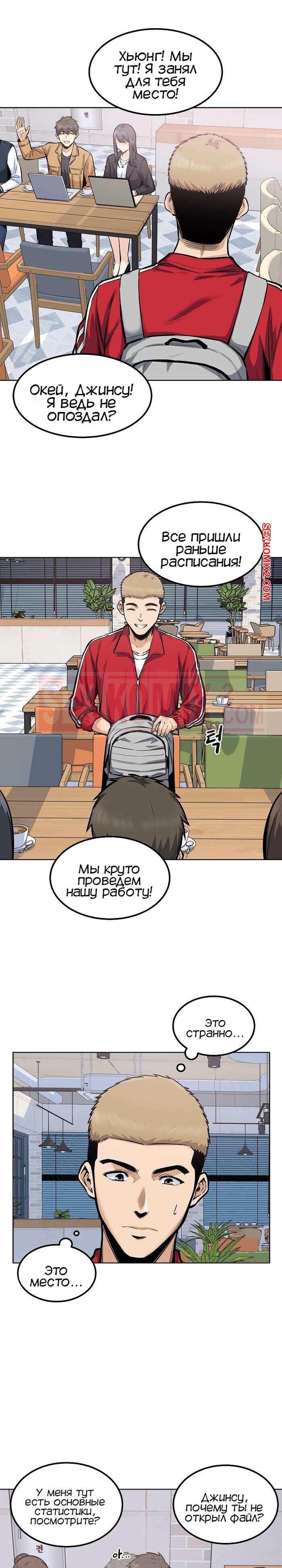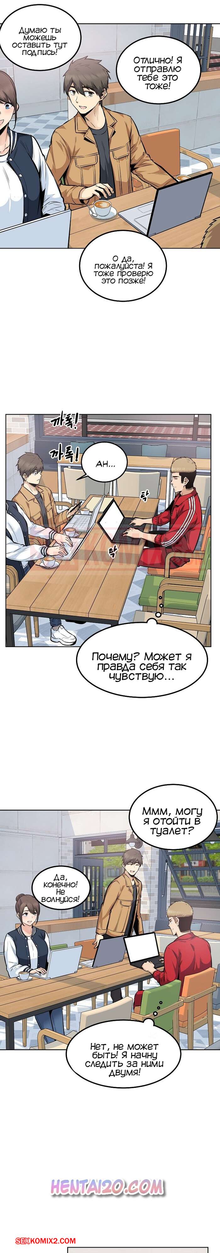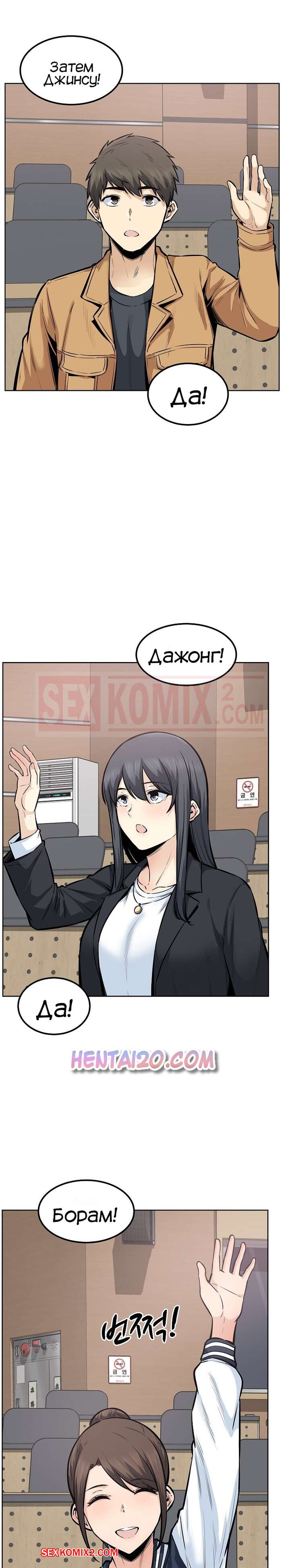 Порно комикс Извини, это моя комната. Часть 87. The Ark Is Me Ребята снова вернулись в колледж и им сразу же поручили командное задание, где парнишка оказался в команде с двумя своими подругами. В один из моментов совместной работы, парень отошел в туалет, где его ждала Дажонг, жаждущая отсосать его большой хуй.