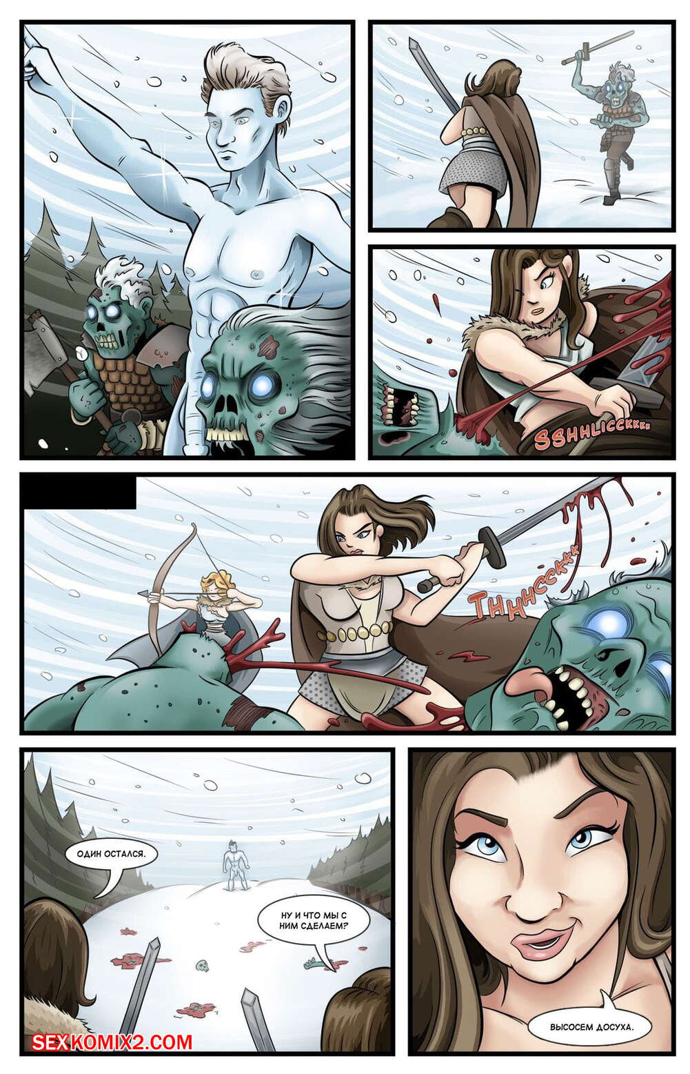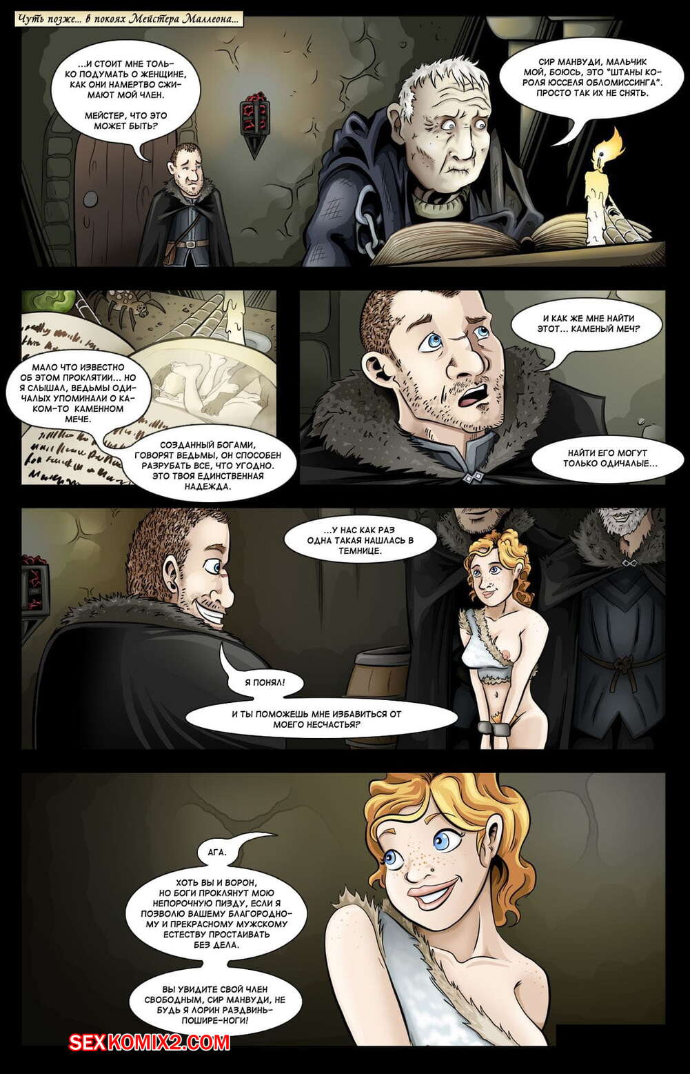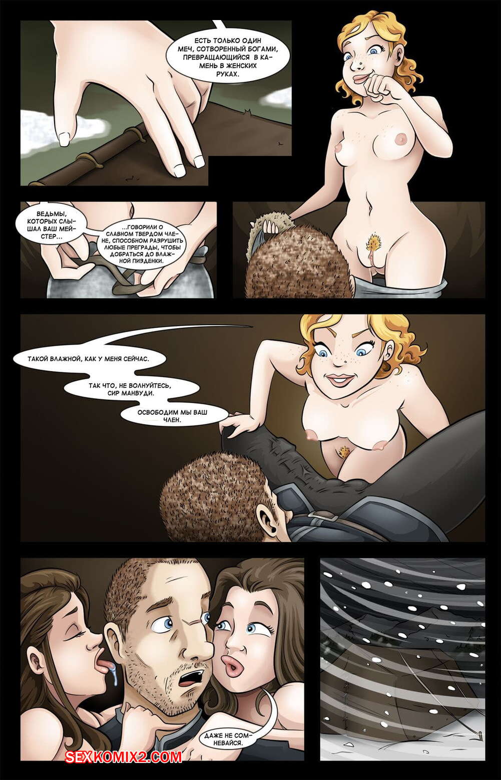 Порно комикс Игра престолов. Каменный меч За ночь у мужика воина член стал намного больше и это сразу заметила красотка из войска. Ночью она решила заняться лесбийской еблей со своей подругой, а затем они отправились к мужику, чтобы попробовать в деле его огромный хуй.