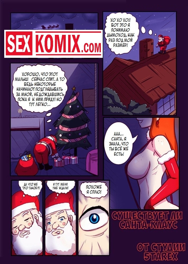 Порно комикс Существует ли Санта Клаус. Во время новогодней ночи Санта Клаус пробирался в дымоходы, чтобы оставлять подарки, он даже не подозревал, что ждет его в одном из домов. Две развратные девушки оделись сексуальные костюмы, и всю ночь ждали Санту. Они хотели воочию убедиться в том, что он существует, если это было бы так, то заняться с ним сексом. Мужчина попав в комнату встал в ступоре, от того что он увидел. Девушки приближались развратные девушки, которые хотели лишь одного подарка, секса Сантой.