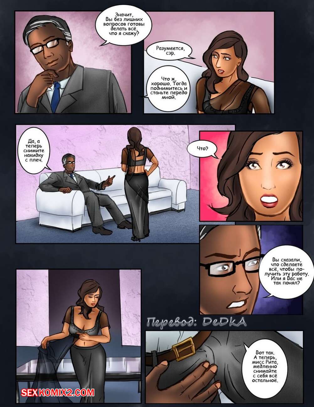 Порно комикс Мисс Рита Горячая красотка брюнетка позвала к себе домой мужчину, чтобы решить с ним деловые вопросы. Вся их встреча переросла в то, что сучка оказалась голой и стала сосать хуй мужика, после чего он ее хорошенько отъебал.