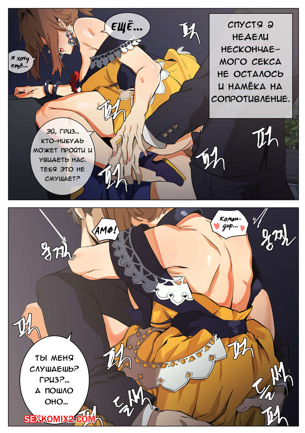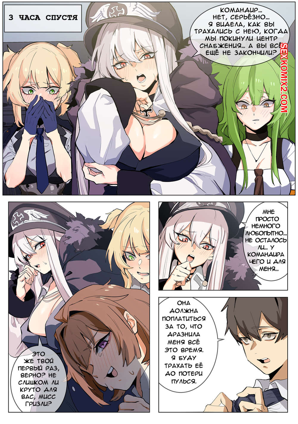 Порно комикс Girls Frontline. Укрощение Гриз. Taming Grizzly Несколько горящих красоток решили весело провести время, поэтому они встретились с парнем, чтобы он помог им в этом. Они стали по очереди отсасывать его большой хуй, после чего он их хорошенько отъебал.