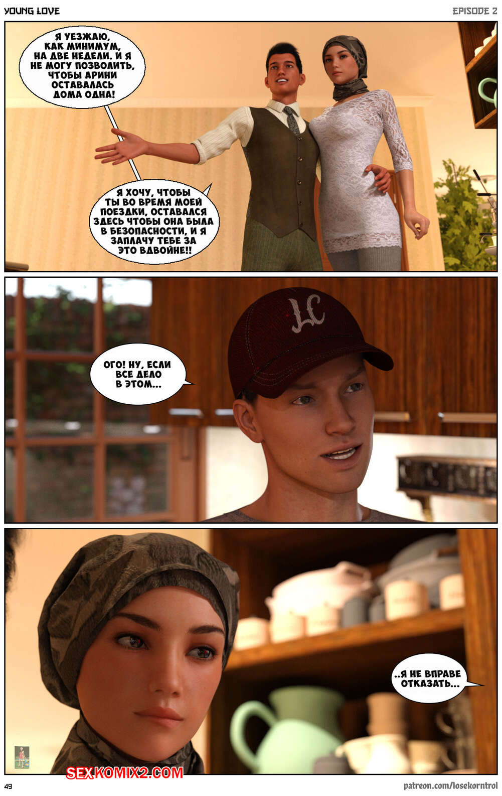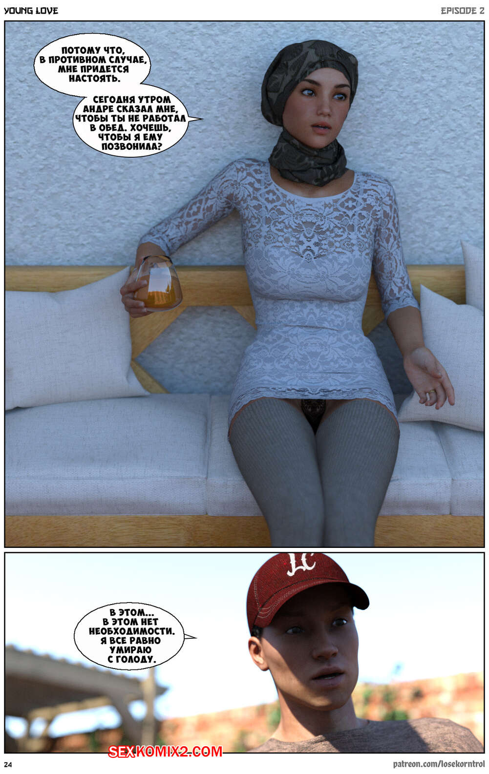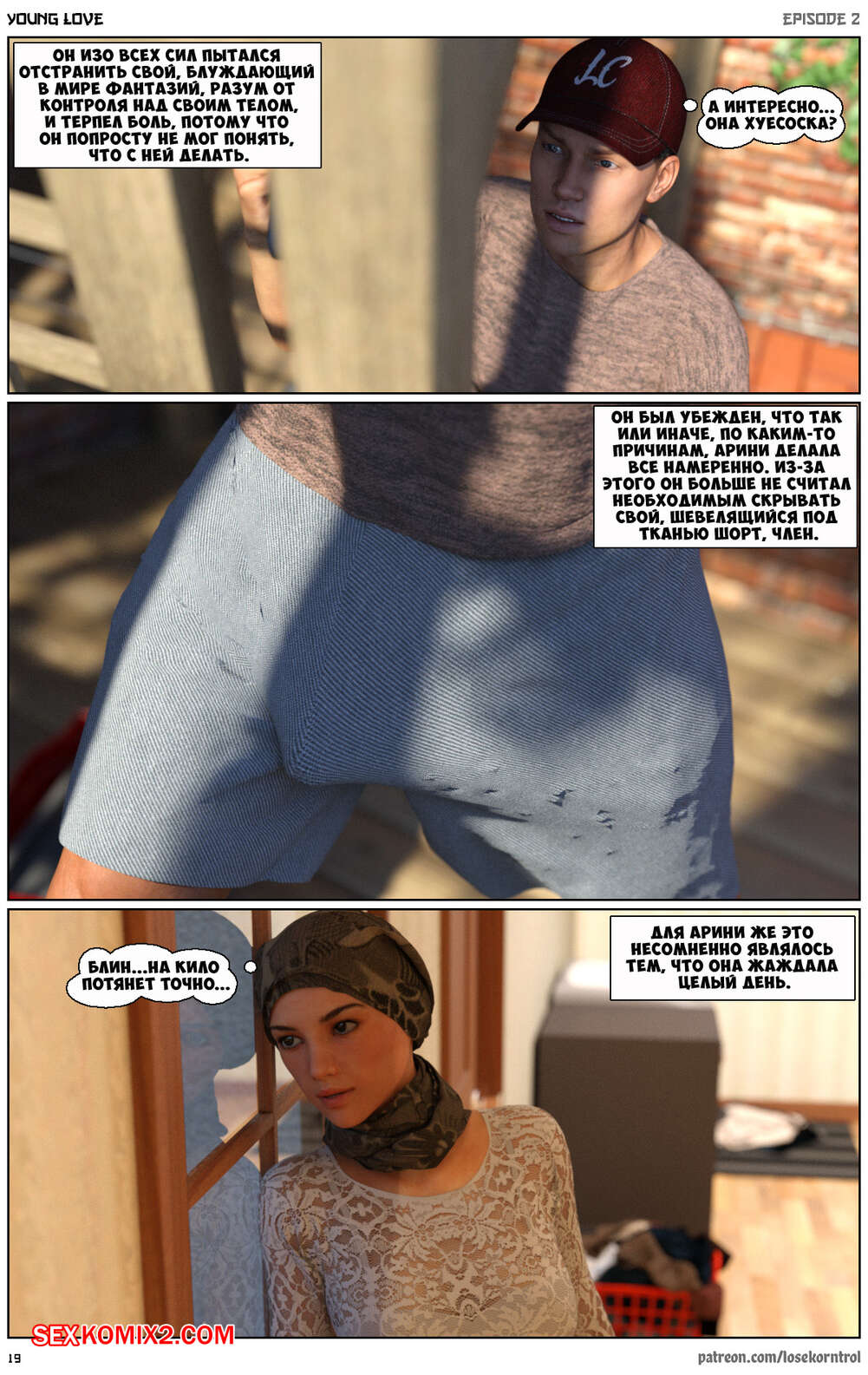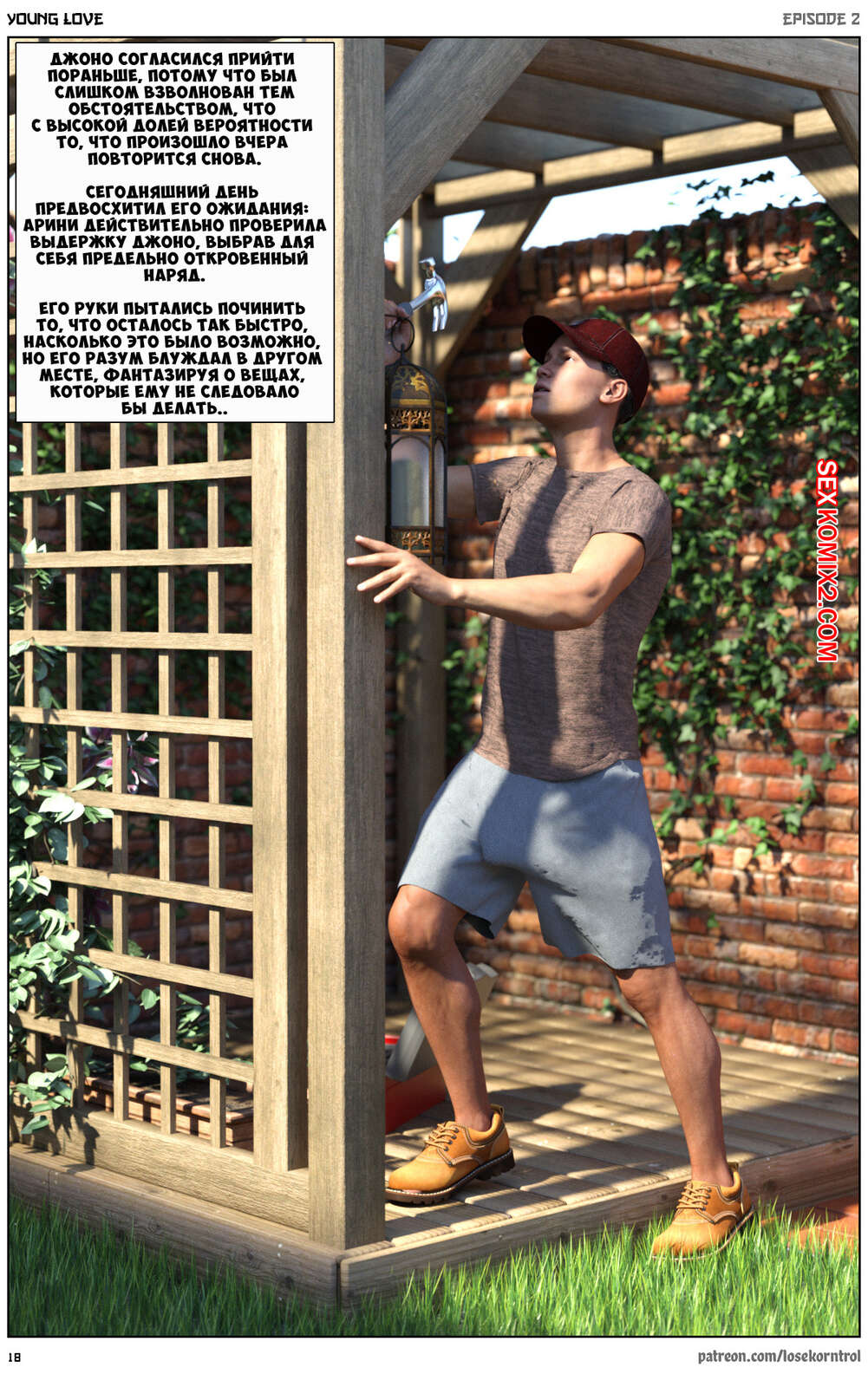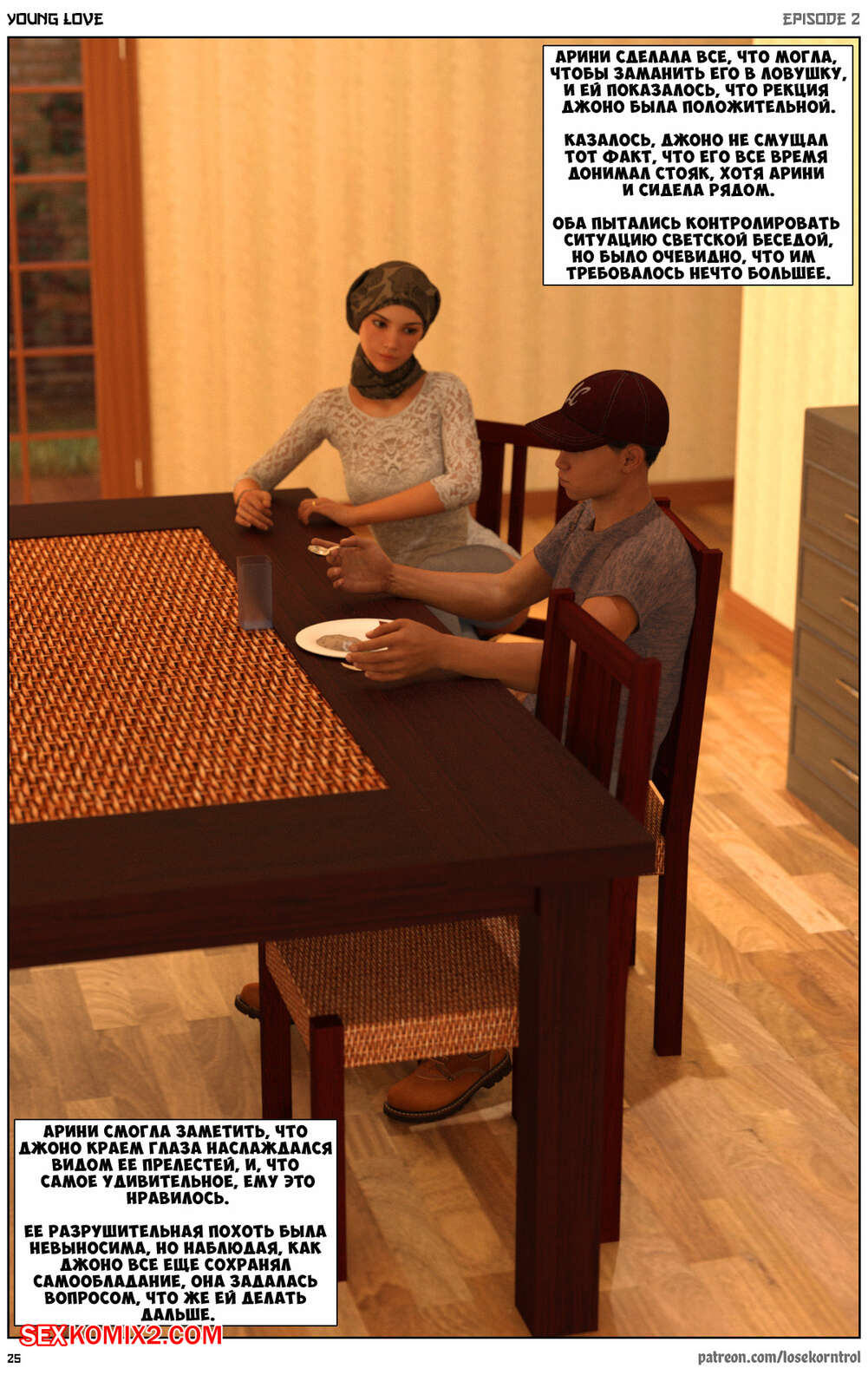 Порно комикс Любовная история. Часть 2. Юная любовь. Young love. Losekorntrol Горячая красотка брюнетка снова воспользовалась тем, что ее муж уехал из дома. Когда к ней пришел молодой паренек для работы, она стала его соблазнять и начала сосать большой хуй парня, а затем дала ему себя выебать.