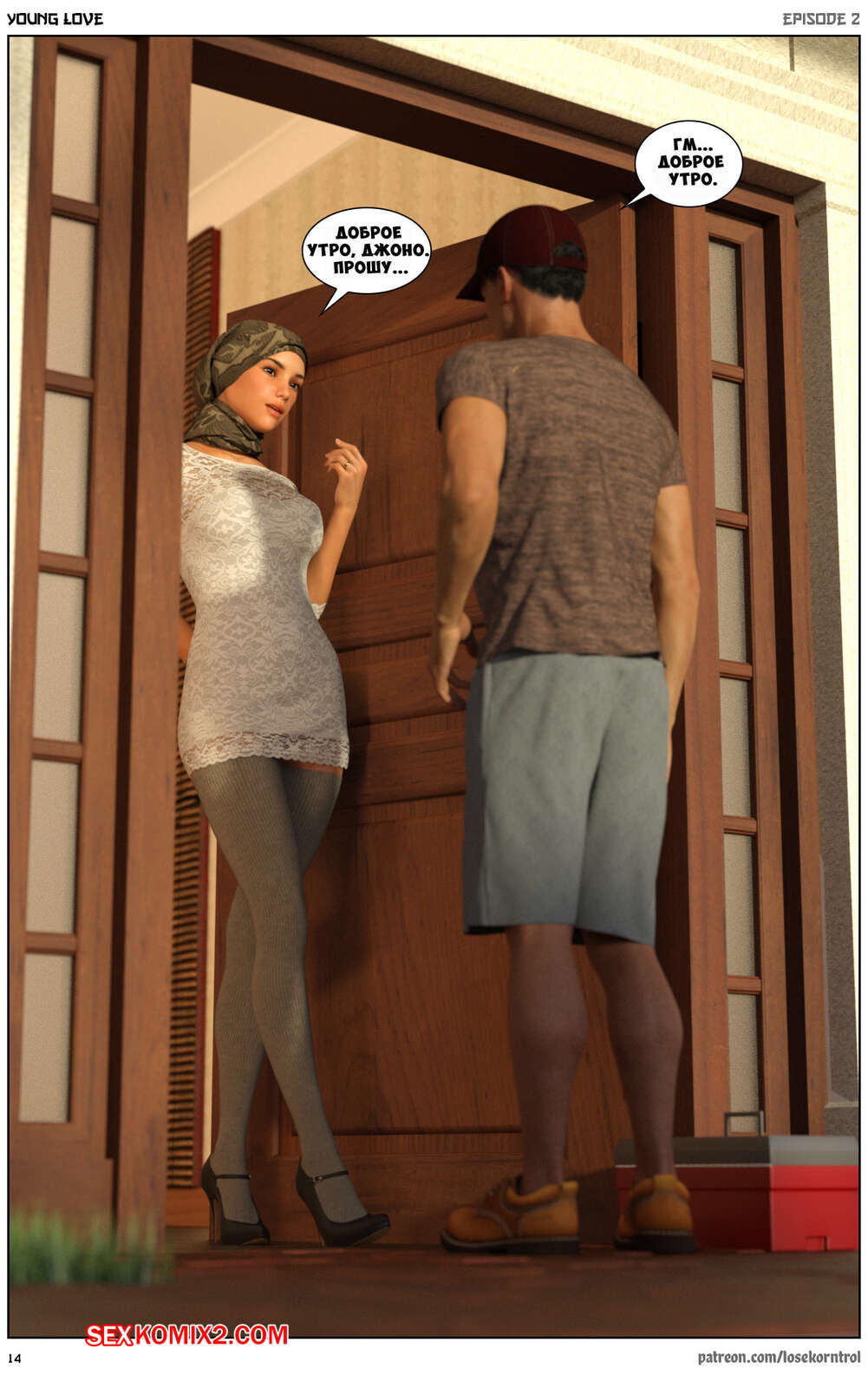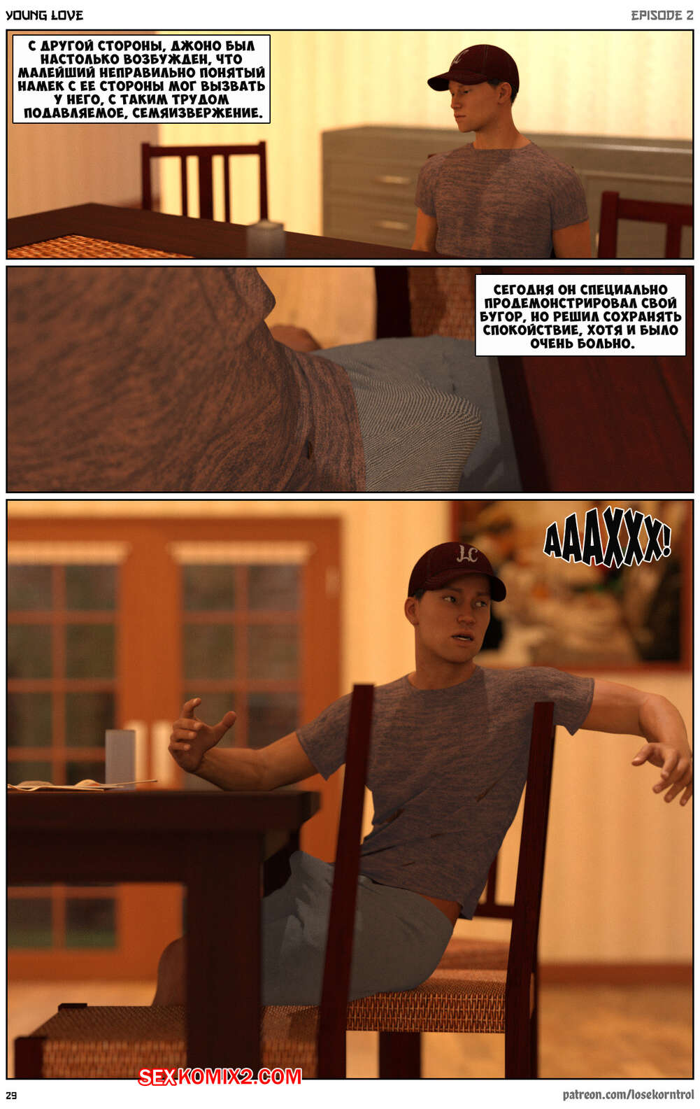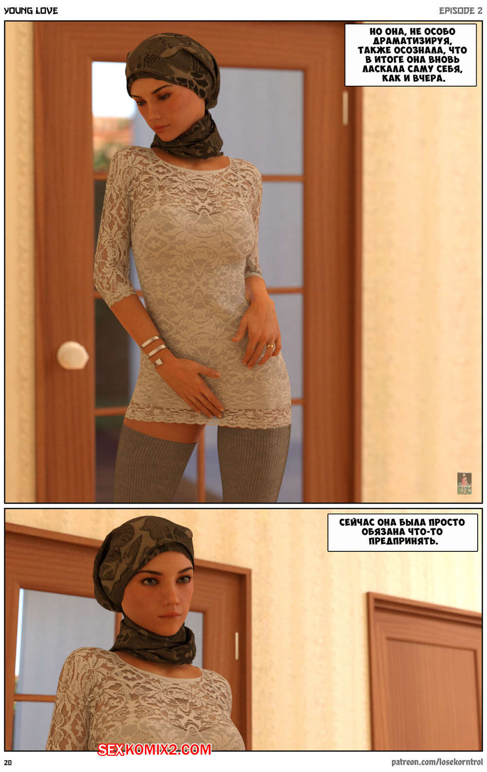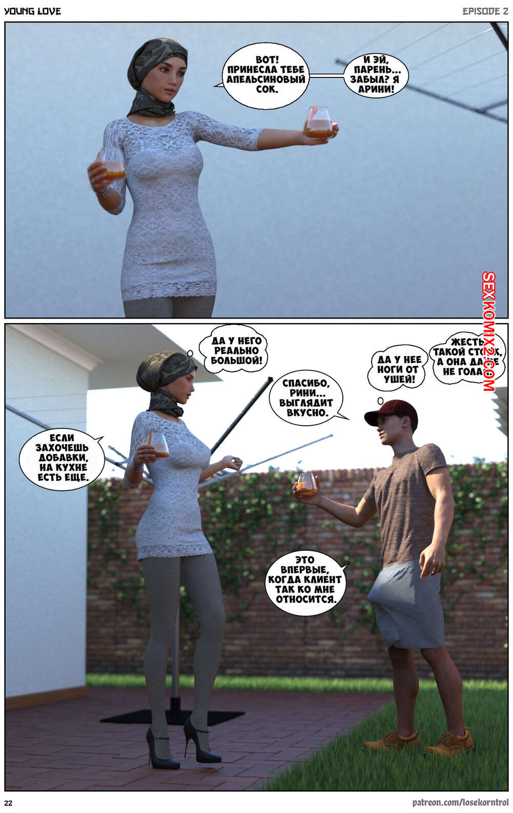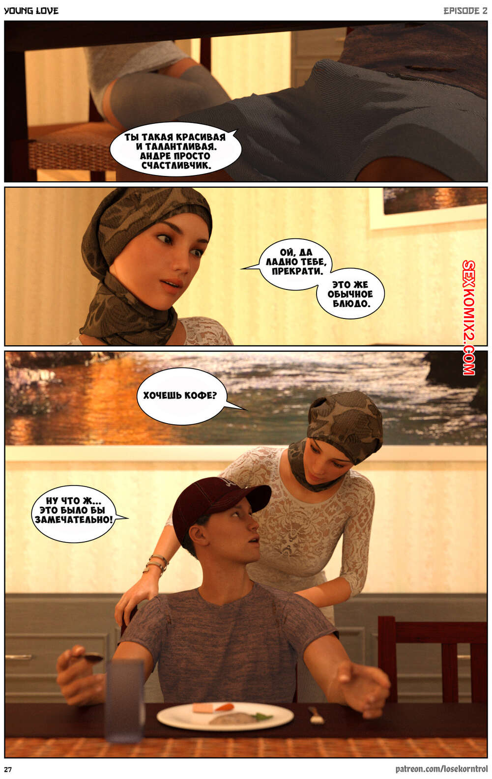 Порно комикс Любовная история. Часть 2. Юная любовь. Young love. Losekorntrol Горячая красотка брюнетка снова воспользовалась тем, что ее муж уехал из дома. Когда к ней пришел молодой паренек для работы, она стала его соблазнять и начала сосать большой хуй парня, а затем дала ему себя выебать.