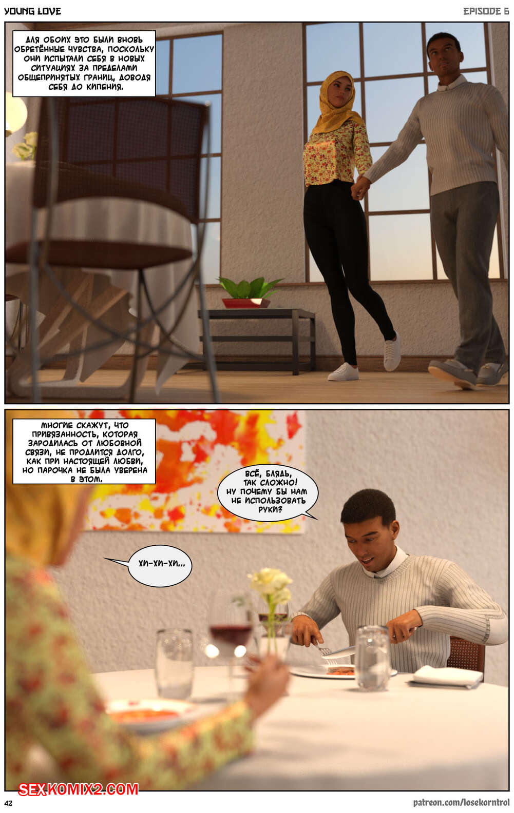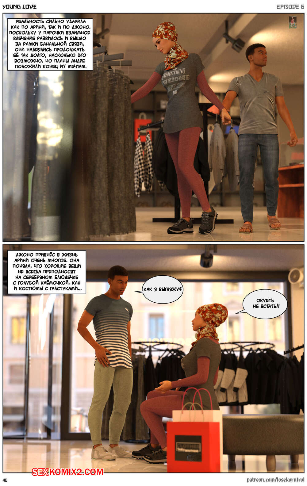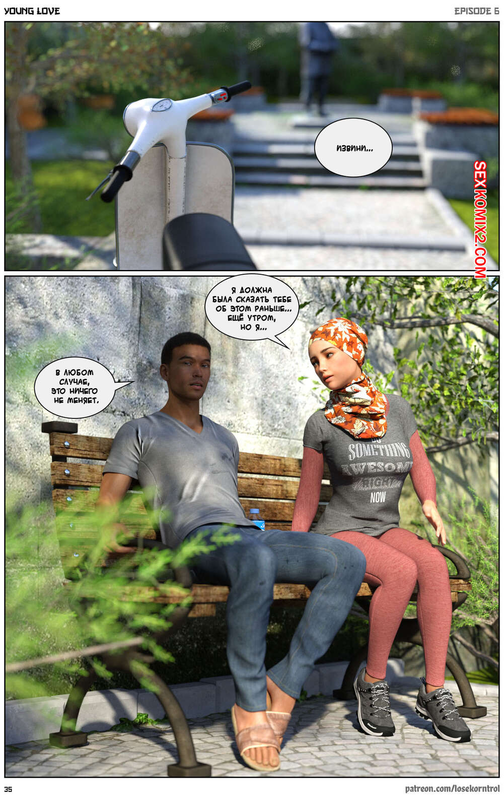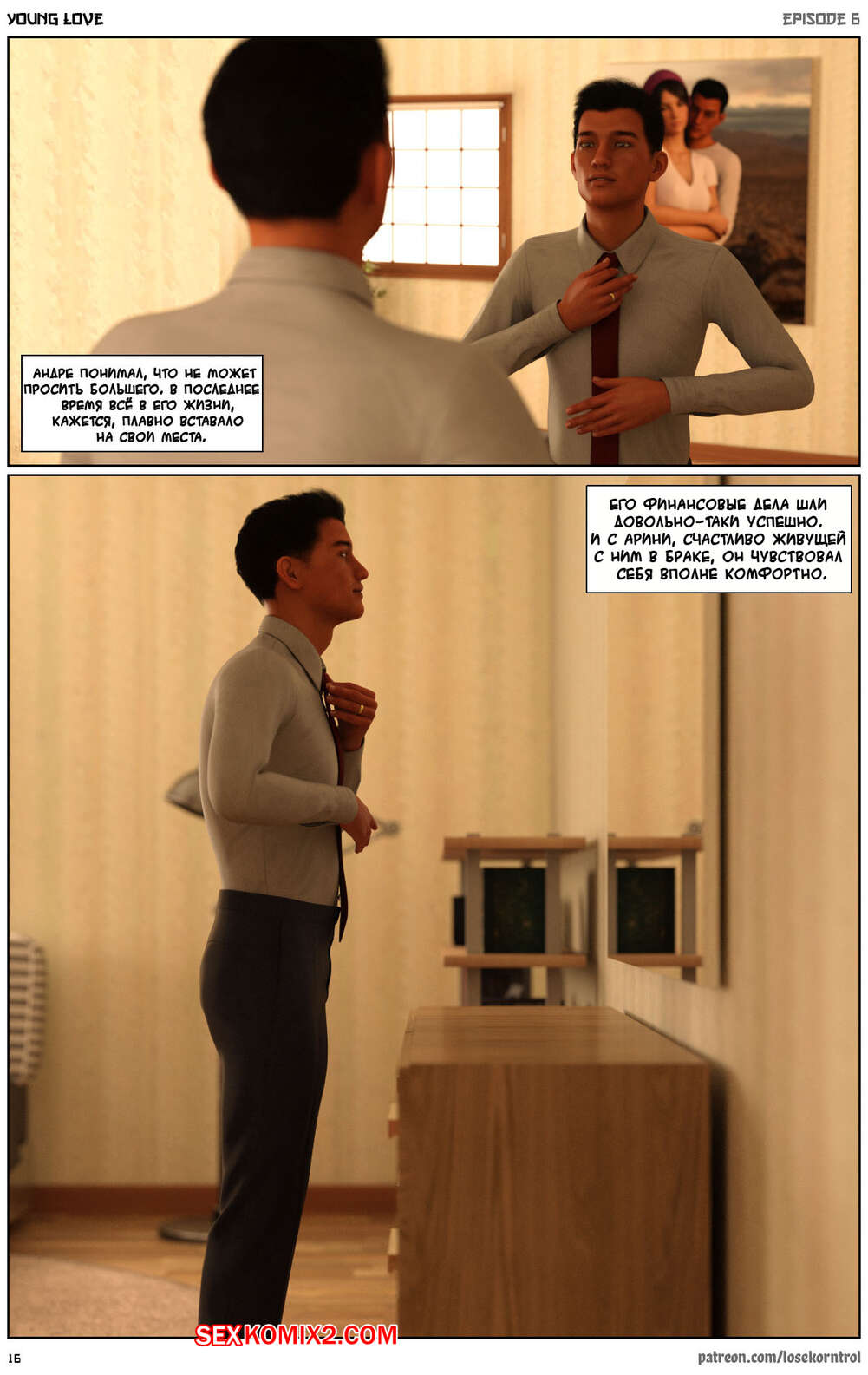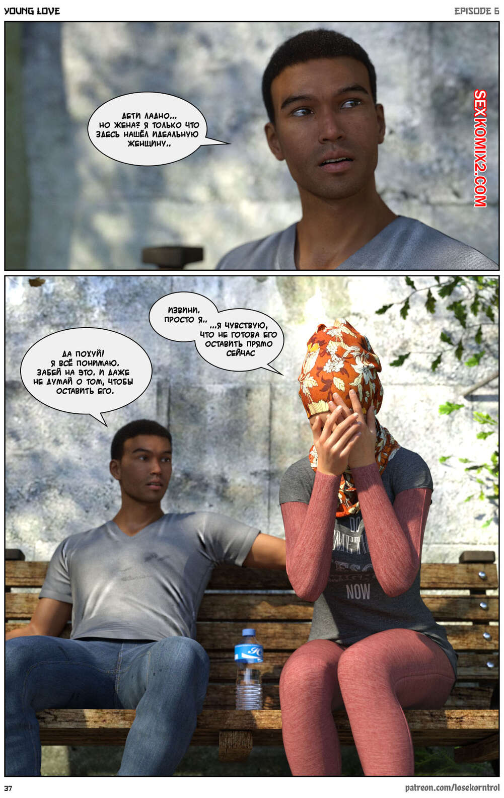 Порно комикс Любовная история. Часть 6. Юная любовь. Young love. Losekorntrol Молодая горячая женатая красотка продолжает изменять своему мужу, когда его нет рядом. Она сначала отсасывает и ебется с молодым парнем, после чего встречается с богатым стариком, чтобы поебаться и с ним.