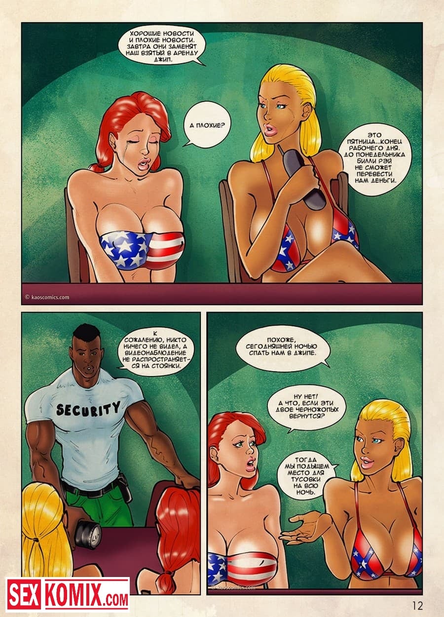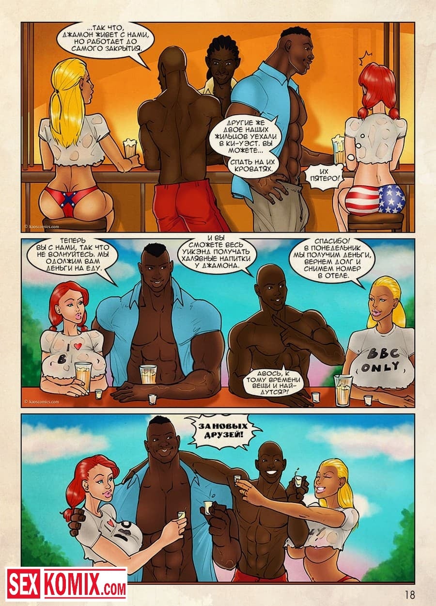 Порно комикс Девушки Флаги. Часть 1. Две развратные подружки с очень красивыми телами, большими сиськами и задницами, гуляли по городу, одевшись в купальники с расцветками разных стран. Они поднимали настроение парням живущим в этом городе. А когда проходили мимо городского праздника их пригласили поучаствовать в конкурсе, в котором нужно было танцевать на сцене. Девушки с радостью согласились и в танце демонстрировали свои сексуальные тела, после этого с ними познакомилась двое чернокожих парней, которые занялись ними страстным сексом.