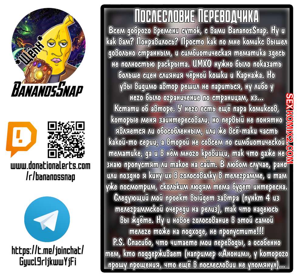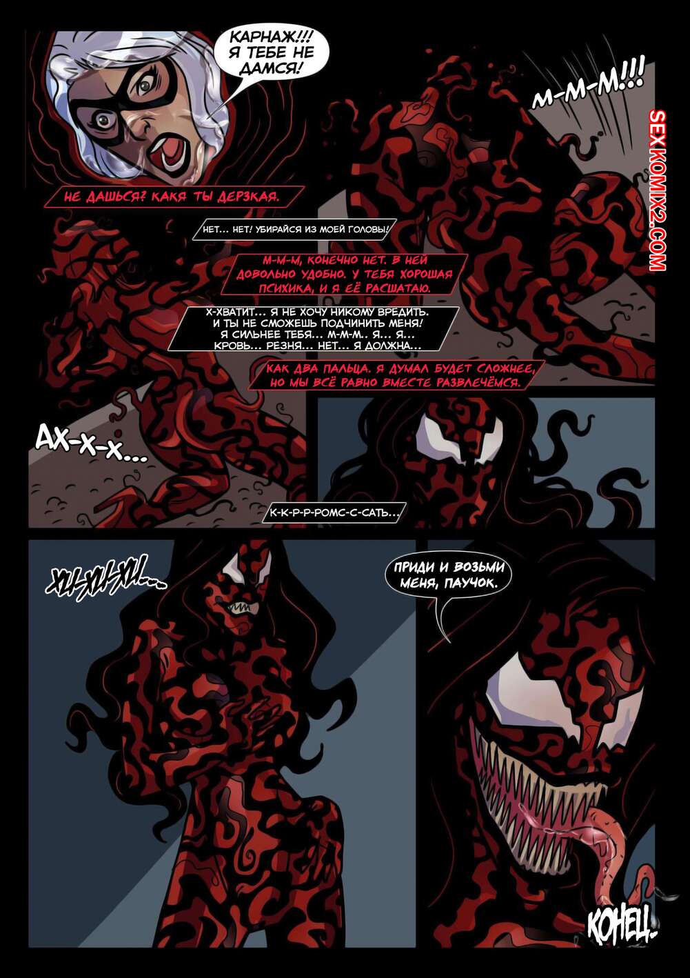 Порно комикс Веном. Карнаж Чёрной Кошки. Black Cats Carnage На горячую красотку блондинку Женщину Кошку напал Карнаж. Он стал ее раздевать и ласкать ее большие сиськи, а затем стал хорошенько трахать, после чего поглотил ее и сделал частью себя.