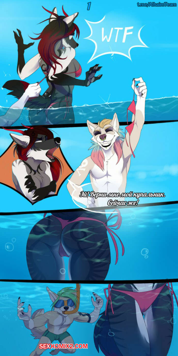 Порно комикс Фурри. Пляж. Beach Два паренька стали плавать под водой возле горячей красотки и стали раздевать ее. Девушка хотела вернуть свой купальник, поэтому ей пришлось отсосать у них их большие хуи и дать им себя хорошенько выебать.