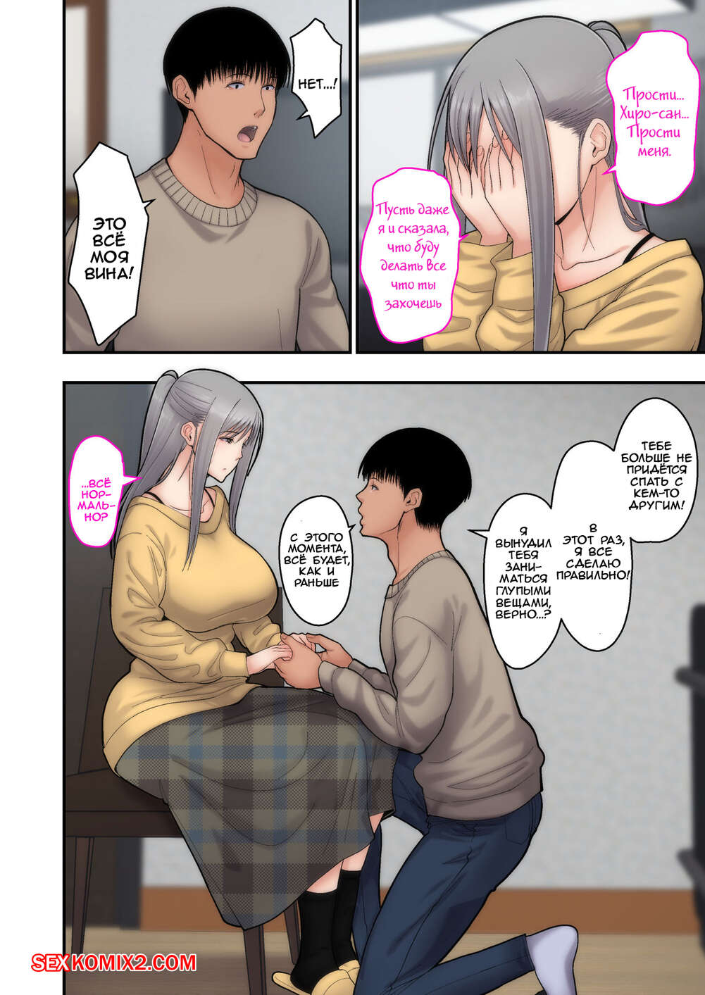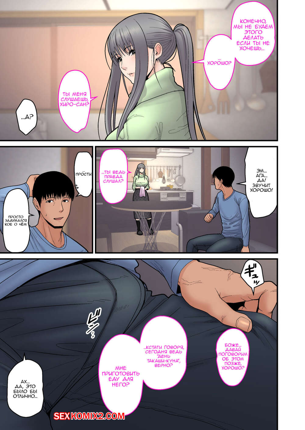 Порно комикс Мысли моей жены. Часть 2. Tsuma Omoi, Netorase Горячая милфа продолжает свои измены мужу пока он наблюдает за этим. Сучка постоянно веселится со своим дружком, отсасывая его большой хуй и давая ему себя хорошенько выебать.