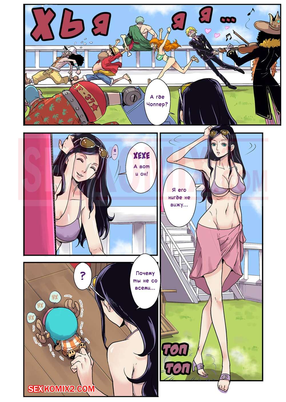 Порно комикс Ван Пис. Палочка Чоппера. CHOP STICK Горячая милфа брюнетка отдыхала на пляже и заметила маленькое существо. Она решила с ним поиграться и заметила у него невероятно огромный член. Сучка очень возбудилась и стала отсасывать его большой хуй, а затем дала себя хорошенько выебать.