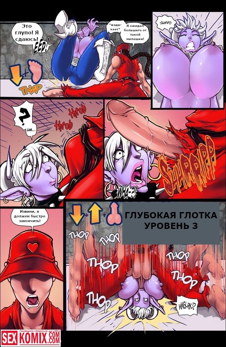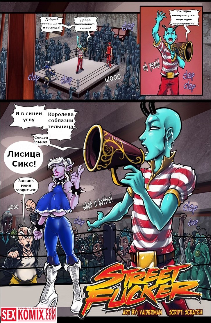 Порно комикс Уличный Секс. Любителям всем известной игры «Уличный боец» будет очень интересно посмотреть этот порно комикс. Здесь вместо стандартных приемов используются секс приемы. На ринг выходит очень сексуальная девушка с большими сиськами и сочной задницей, а против неё двое мужчин. Когда начинается бой они начинают нападение, снимают с нее одежду, оголяя ее сексуальное тело. От этого их члены становятся твердыми как камень, используя супер приём один из бойцов наклоняет свою противницу и засовывает член ей в рот. Несколькими ритмичными движениями он трахает ее в самое горло, а потом кончает на лицо. Безусловно это чистая победа.