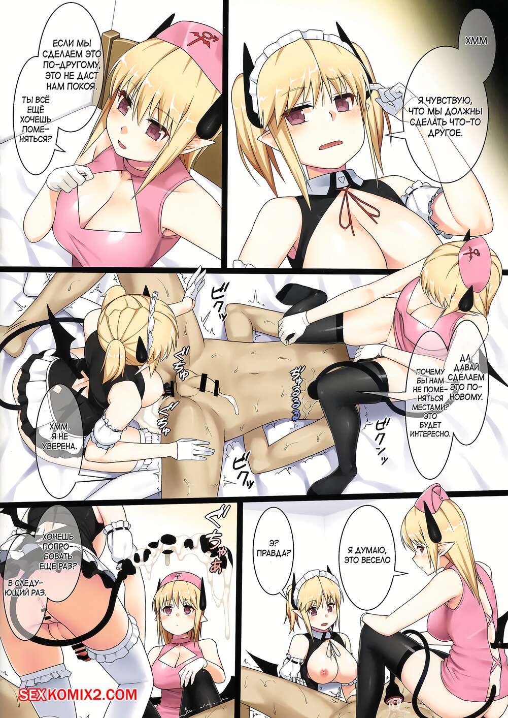Порно комикс Футанари. Наш носочный клуб ссан. Uchi no Succubussan Две горячие красотки блондинки с большими хуями решили повеселиться с пареньком. Они уложили его на кровать и раздели, связав его руки. Пока одна сучка сидела у него на лице, другая трахала парня в задницу.