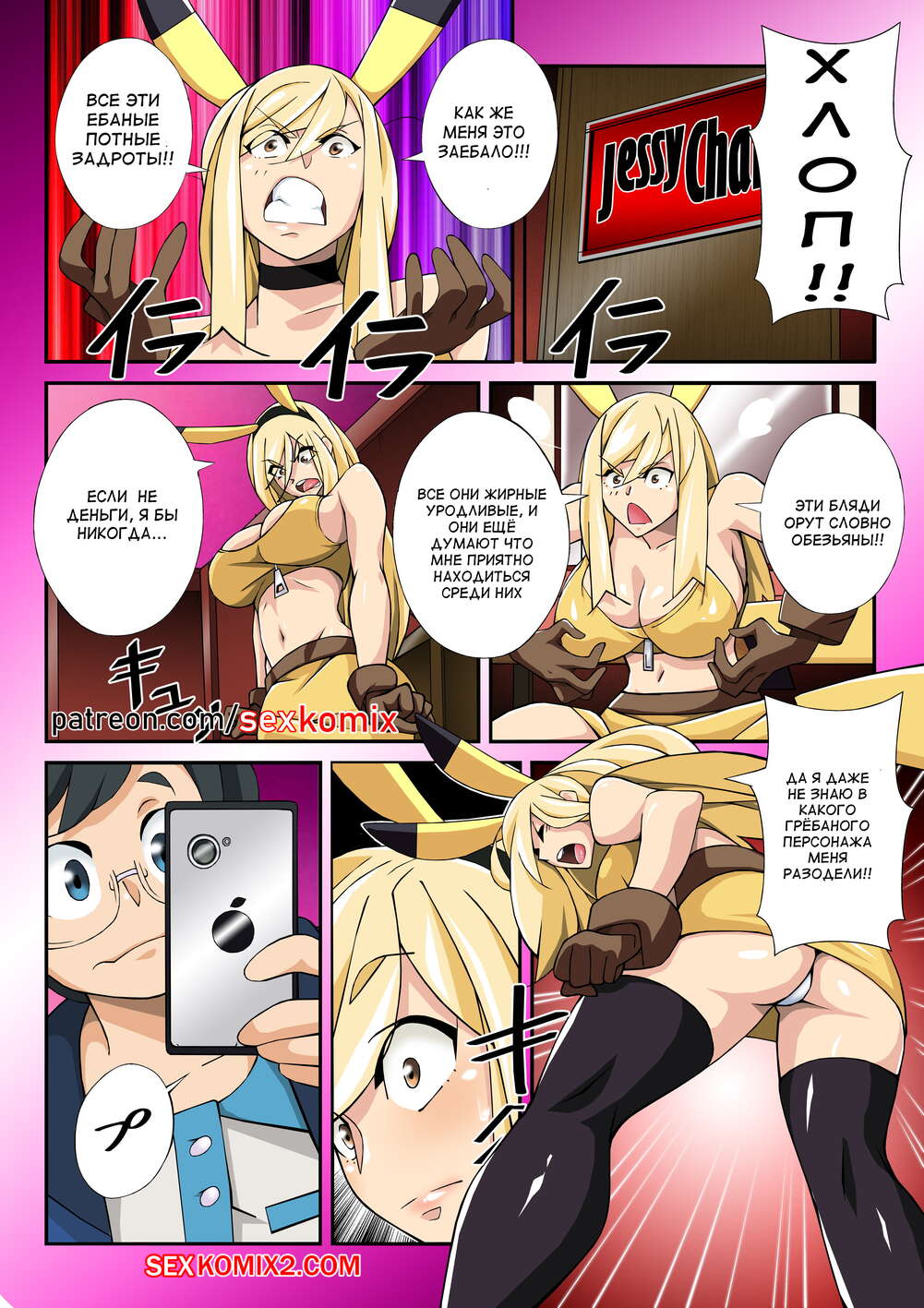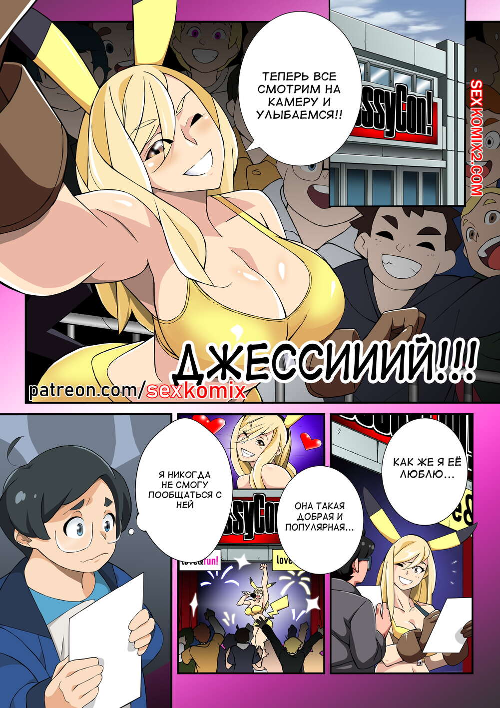 Порно комикс Проблемы на Джессиконе. Покемон. В цвете. Nisego. Горячая красотка Джесси собрала вокруг себя целую толпу фанатов. Но парень который больше всего хотел взять у нее автограф не смог пробраться через толпу и решил попытать удачу за кулисами.
