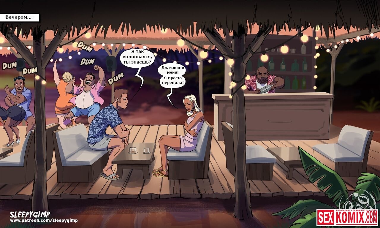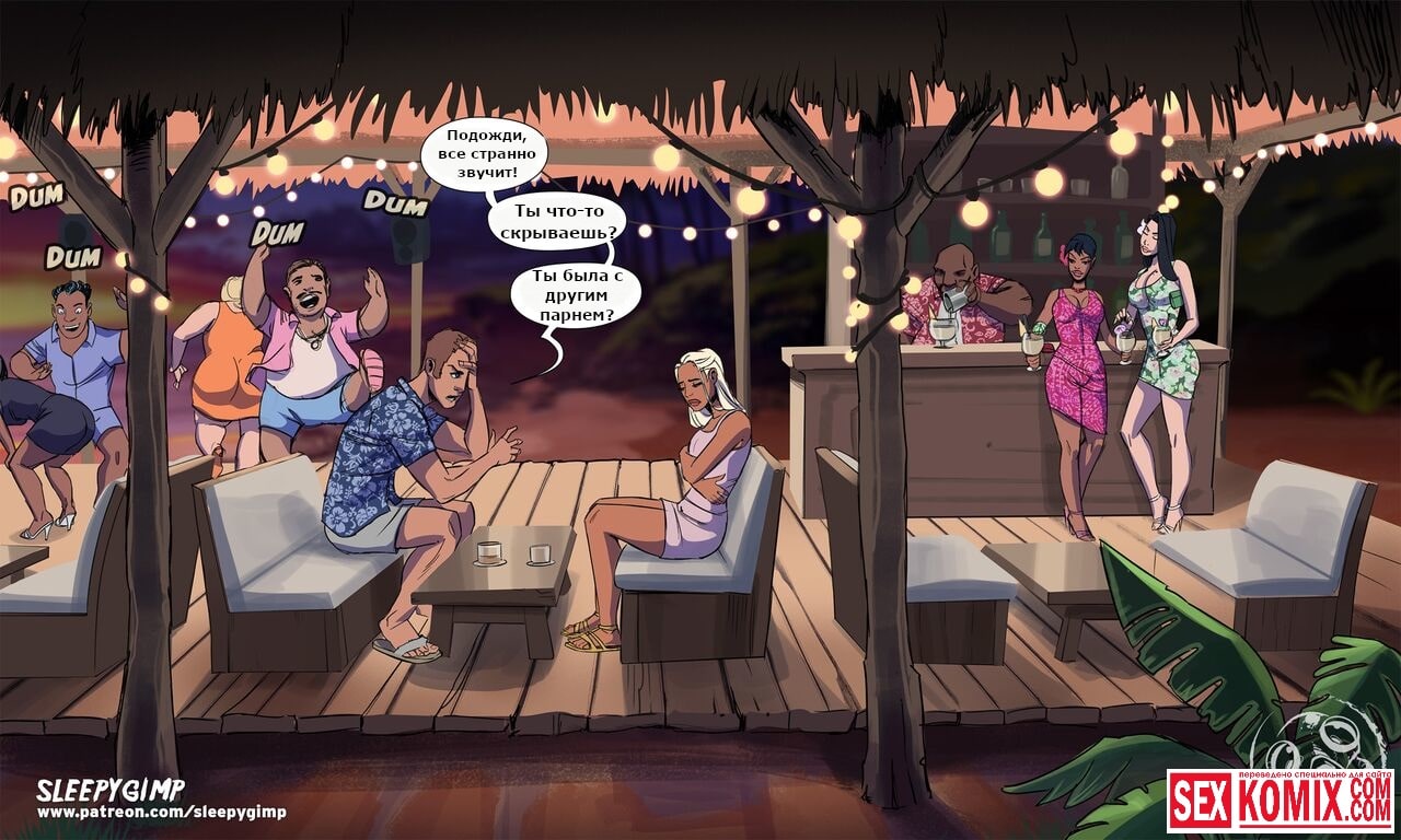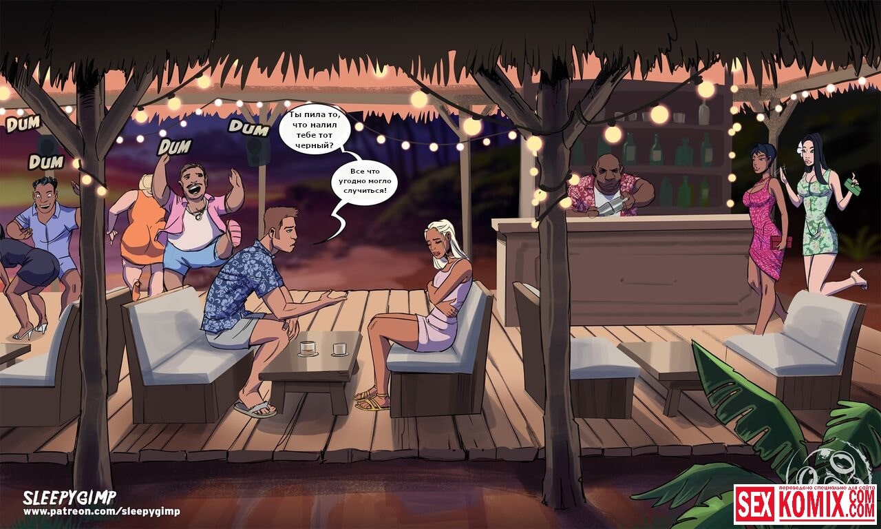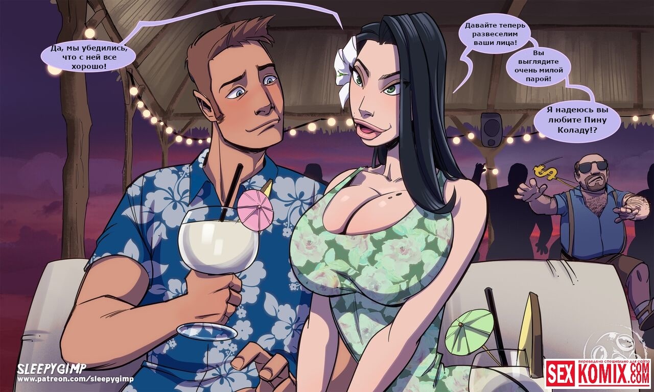 Порно комикс Коктейль Руфи Колада. Две горячие лесбиянки отдыхали на берегу океана и услышали как пара ссорится за баром. Девушка психанула и послала своего парня куда подальше, а сама пошла гулять по берегу. Эти две красотки решили утешить её, и отправились вслед за ней. Они пригласили её на несколько бокалов коктейля. После которого она стала пьяненькая, и пошла с ними в отель. Лесбиянки устроили развлечение в стили, как они любят, они занялись групповым сексом с элементами БДСМ. Утром когда девушка проснулась, она ничего не помнила. Но на ее душе было очень хорошо, ей захотелось помириться со своим парнем.