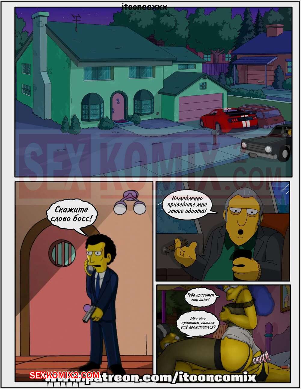 Порно комикс Симпсоны. Часть 6. Змей. Эпизод 3. Simpsons. Snake. IToonEAXXX Барт заметил, что к его горячей мамке ночью пришел друг его отца, которого нет дома. Он стал подглядывать за мамкой и ее ебырем, наслаждаясь тем, как милфа отсасывает большой хуй мужика и дает ему себя выебать в пизду и задницу.