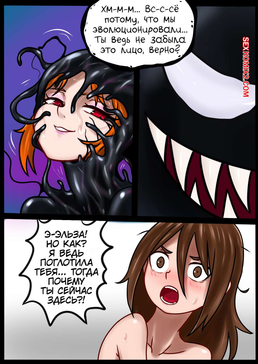 Порно комикс Вторжение Венома. Часть 2.2. Venom Transsexual II. Веном Транссексуал II Веном захватил тело горячей рыжей красотке и она отправилась к своей подруге брюнетке. Веном захватил и ее тело, а затем две красотки занялись страстной лесбийской еблей.