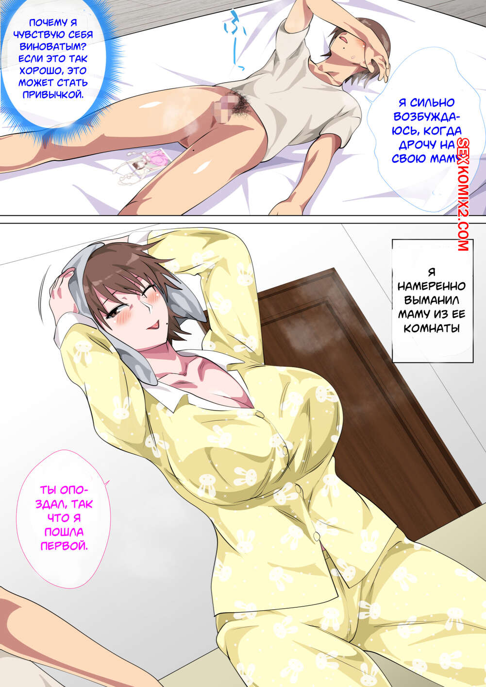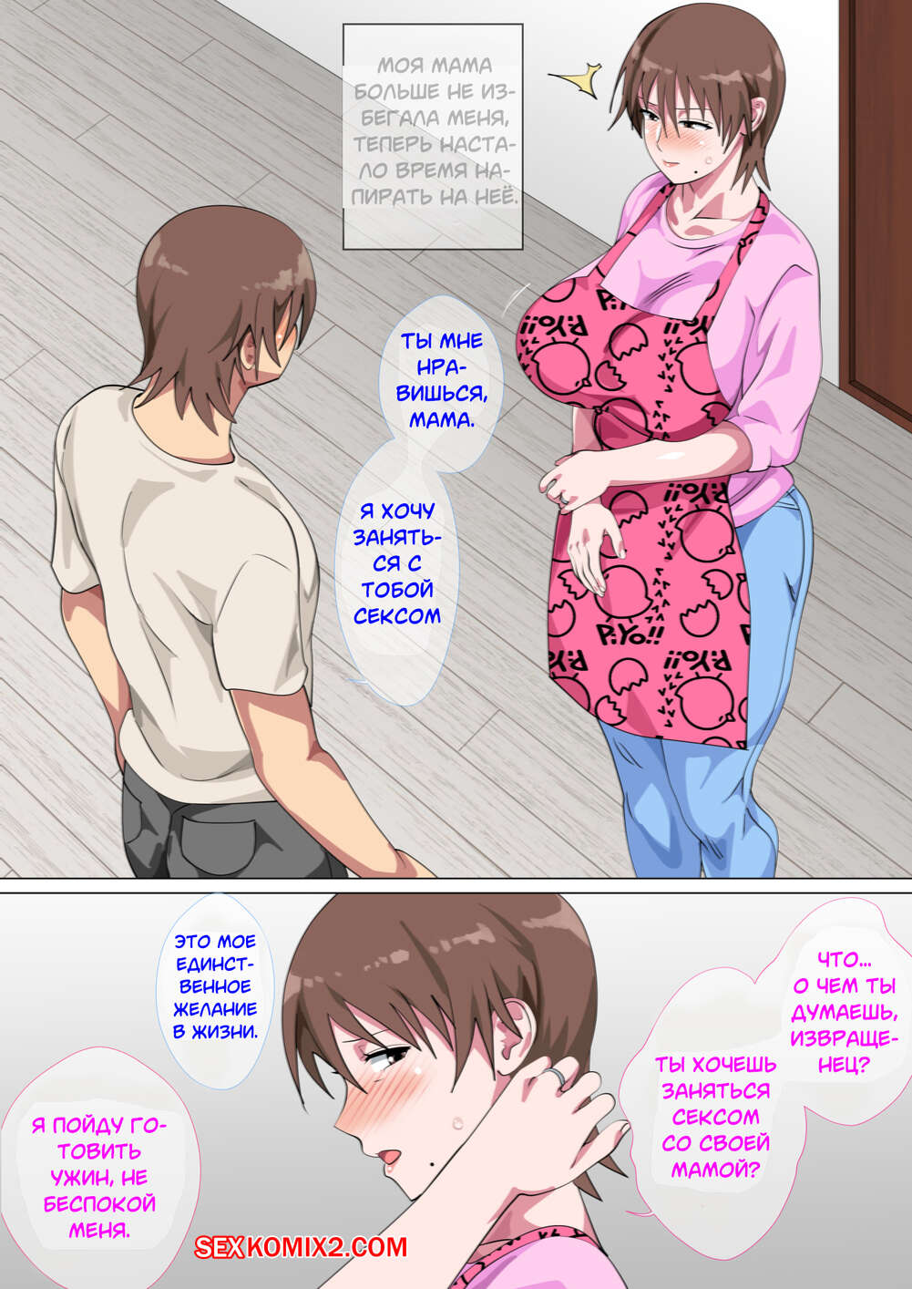 Порно комикс Мать, которую много раз имели и которая потеряла контроль Горячая милфа брюнетка просто обожает ебаться и не может жить без секса. Она решила пойти на крайние меры и отправилась голой к своему сыну, чтобы отсосать его большой хуй и дать ему себя хорошенько выебать.