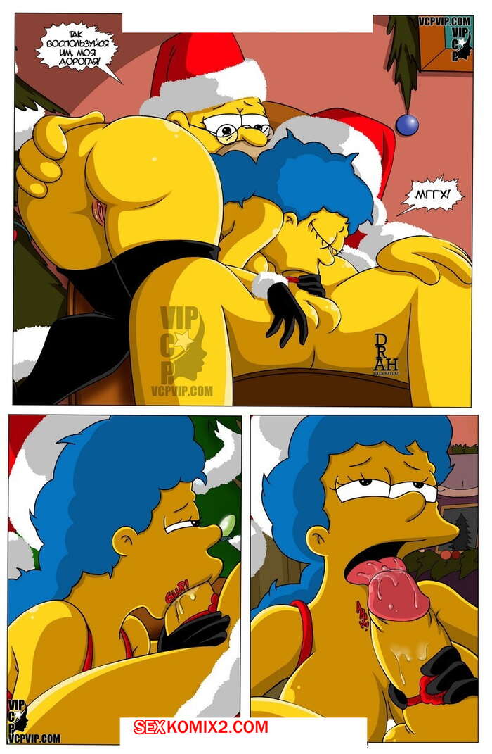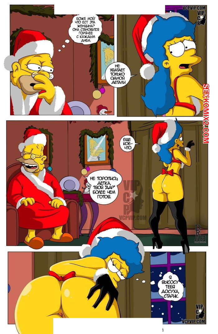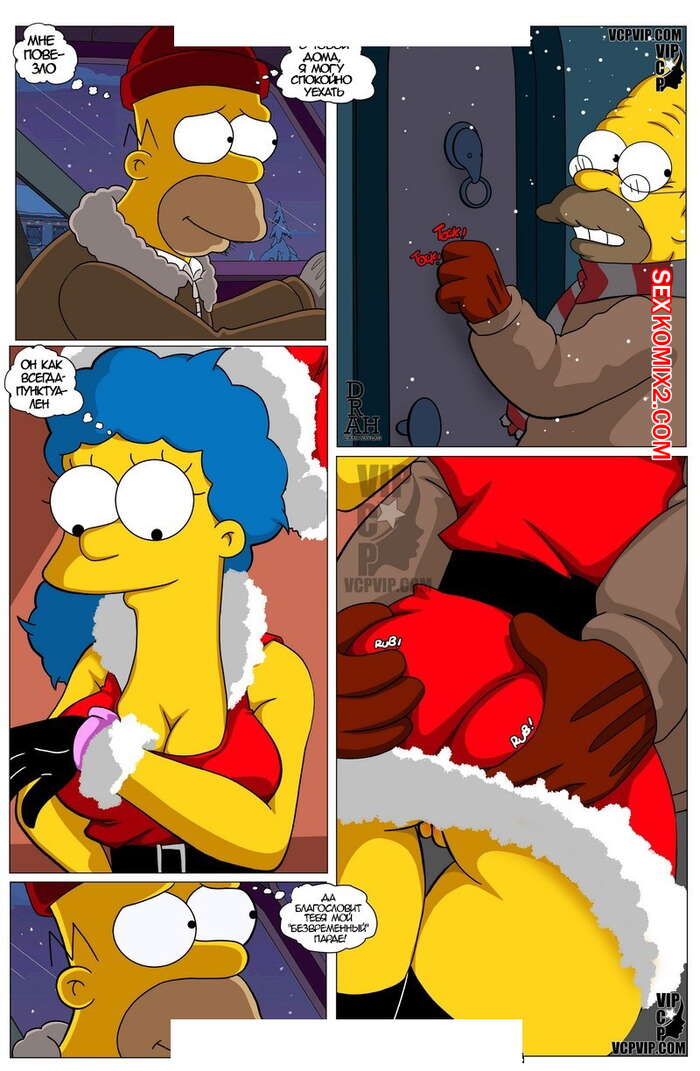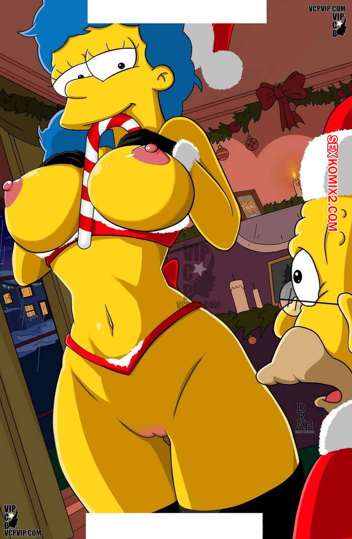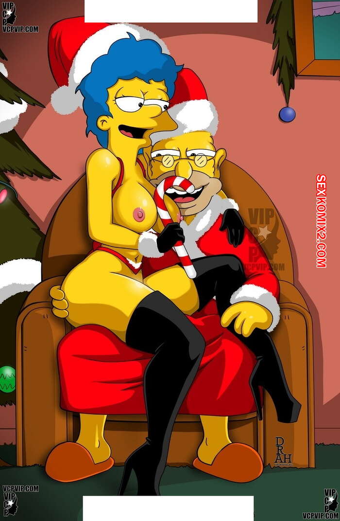 Порно комикс Симпсоны. Рождественское блюдо Сисястая милфа прогнала своего мужа из дома в рождественскую ночь. К ней приехал его отец и она решила устроить ему сюрприз. Сучка надела сексуальное праздничное белье и отсосала хуй деда, после чего дала ему себя выебать.