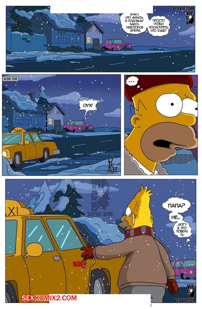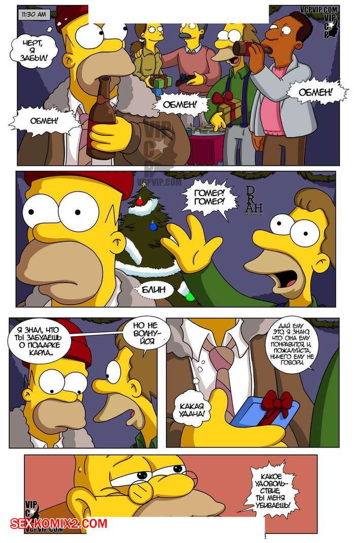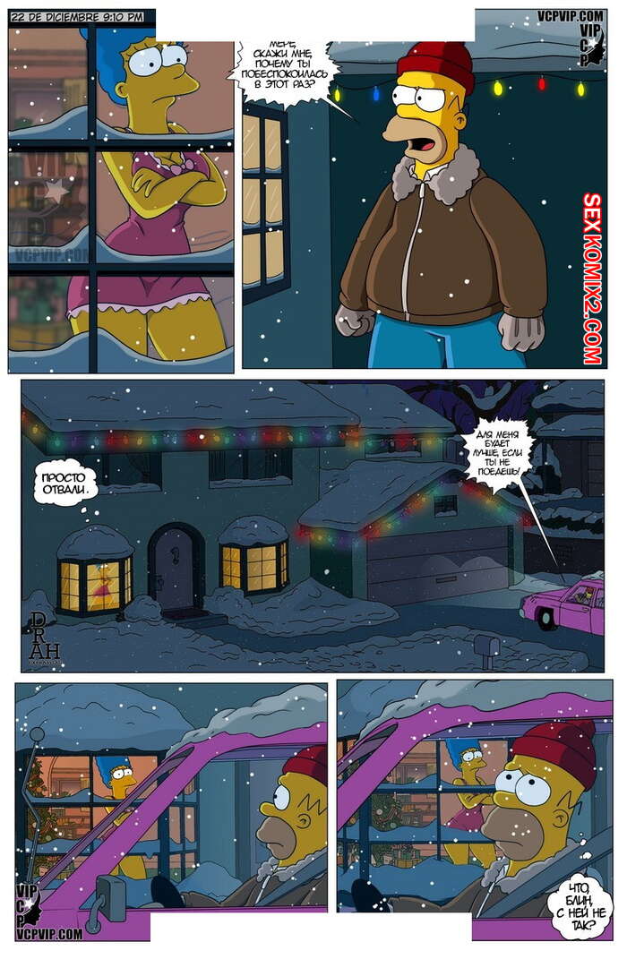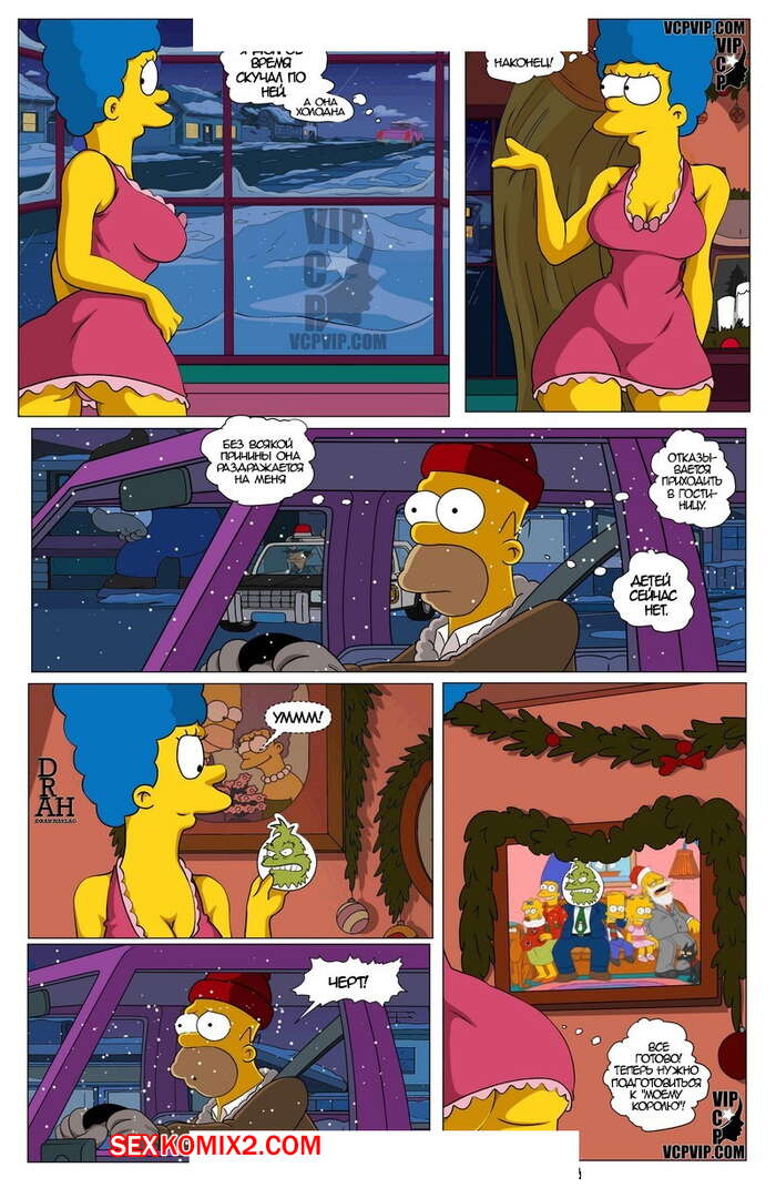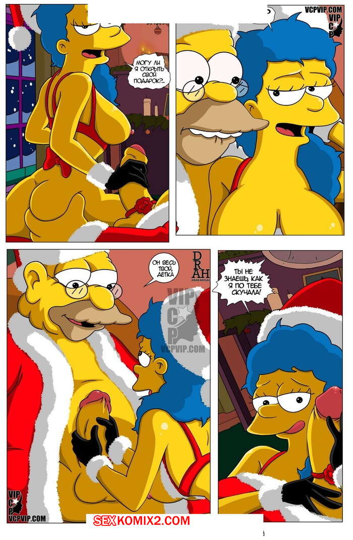 Порно комикс Симпсоны. Рождественское блюдо Сисястая милфа прогнала своего мужа из дома в рождественскую ночь. К ней приехал его отец и она решила устроить ему сюрприз. Сучка надела сексуальное праздничное белье и отсосала хуй деда, после чего дала ему себя выебать.