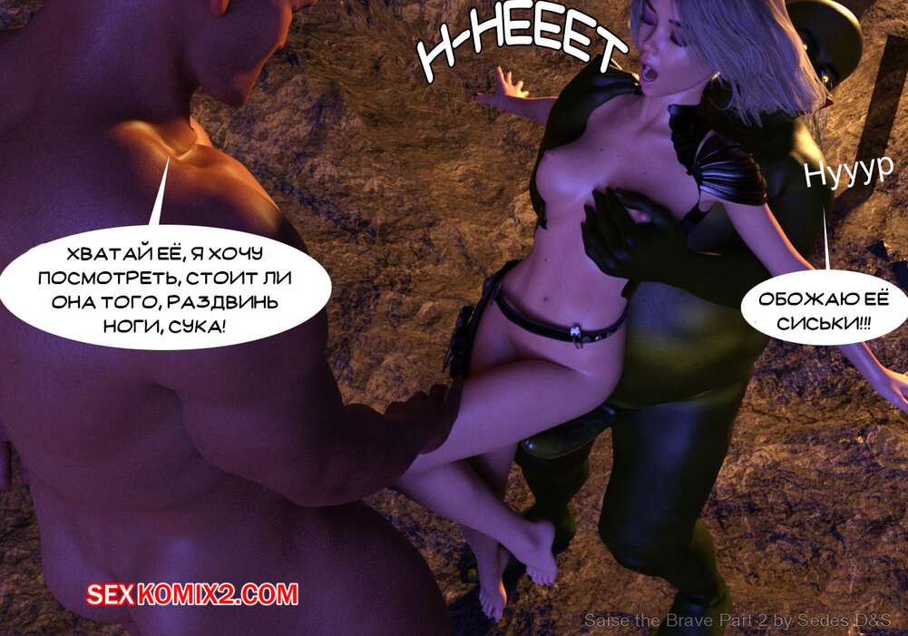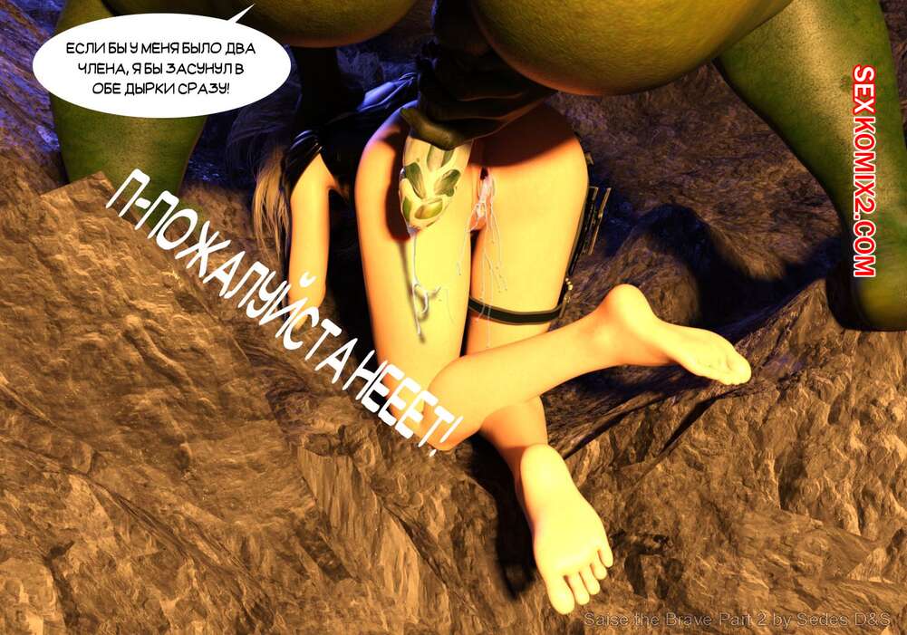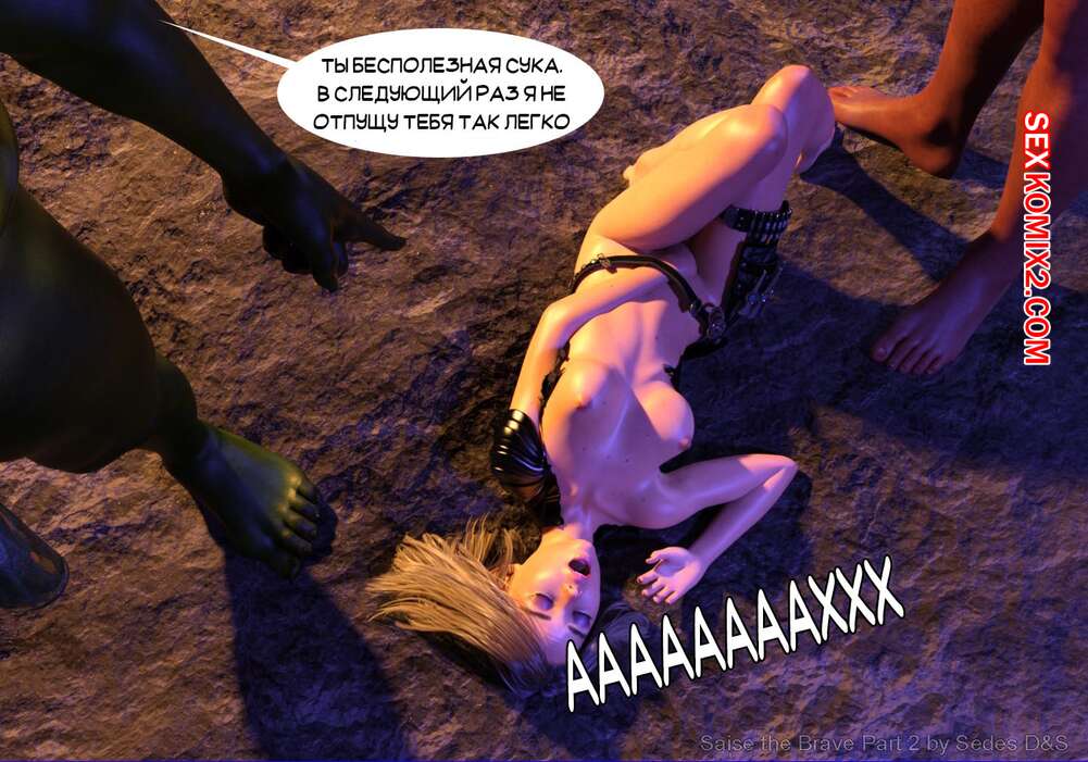 Порно комикс Храбрая Сайзе. Часть 2. Saise the Brave Горячая сисястая красотка блондинка попала в руки двух монстров с огромными хуями. Они раздели ее и стали трахать ее в ротик, а после этого хорошенько выебали ее пизду и задницу.