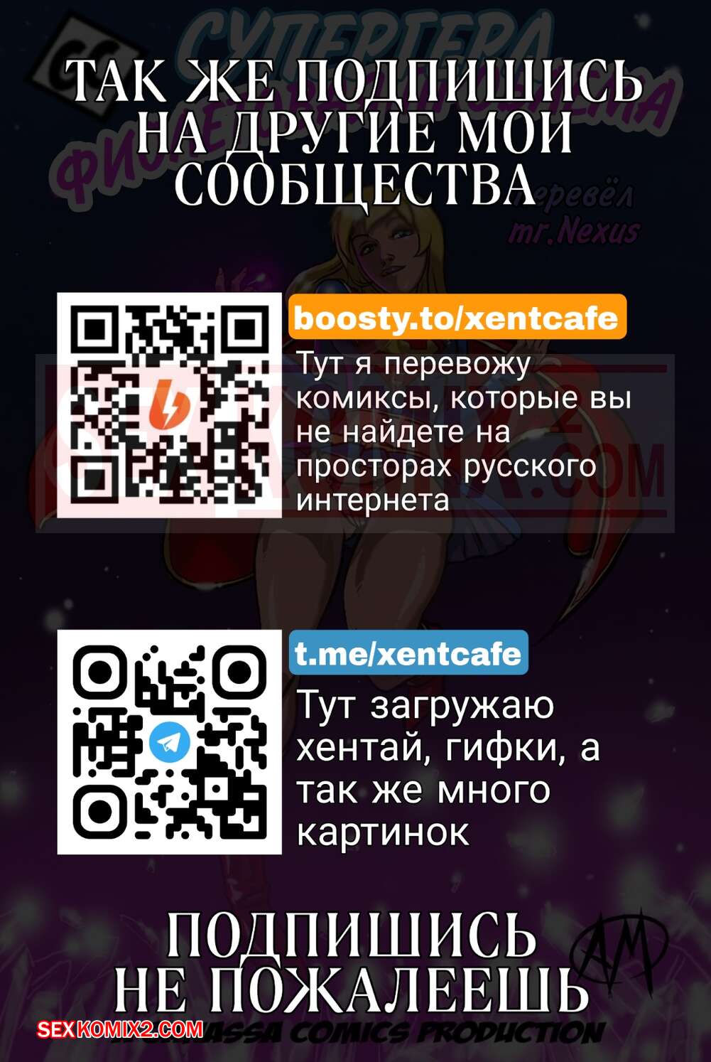 Порно комикс Supergirl. Супер Гёрл. Фиолетовая проблема. Purple Trouble. Ganassa Горячая блондинка супергероиня обожает ебаться. Она сперва трахнула свою пизденку дилдаком, а затем отправилась к своим подружкам, чтобы заняться групповой лесбийской еблей.