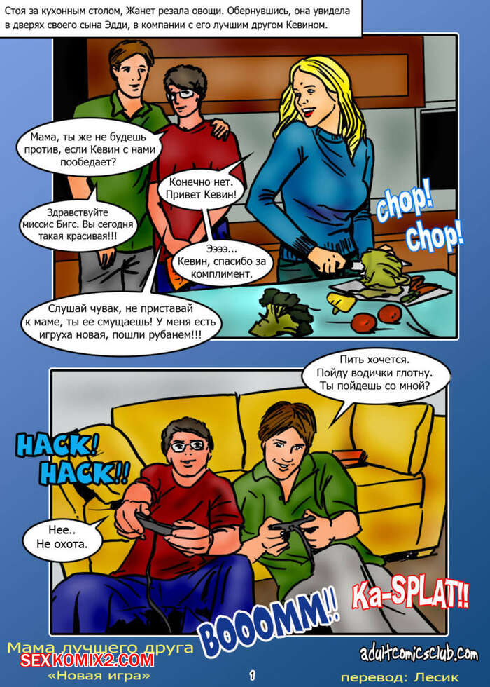 Порно комикс Мама лучшего друга Парень остался наедине с сисястой милфой блондинкой мамкой своего лучшего друга. Сучка стала соблазнять парня и сосать его большой хуй, после чего дала ему себя хорошенько выебать.
