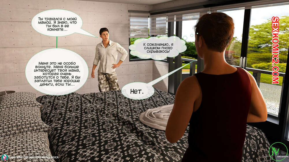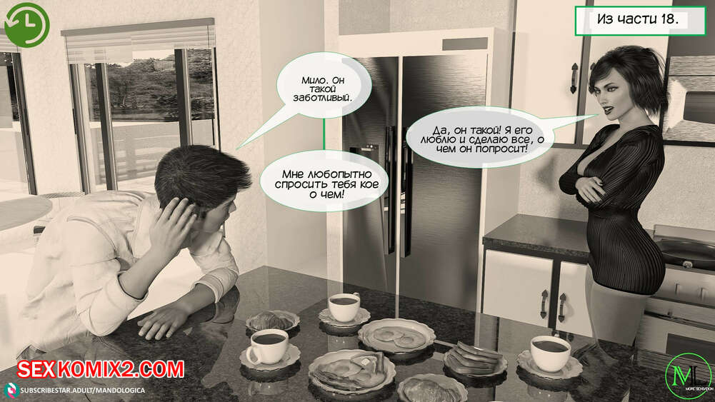 Порно комикс Только для тебя. Часть 20. Just For You. MandoLogic Парнишка решил повеселиться со своей подругой блондинкой в комнате. Он стал ласкать ее большие сиськи, а затем стал ее трахаться, а тем временем его мамаша ласкала пизденку другой милфы.