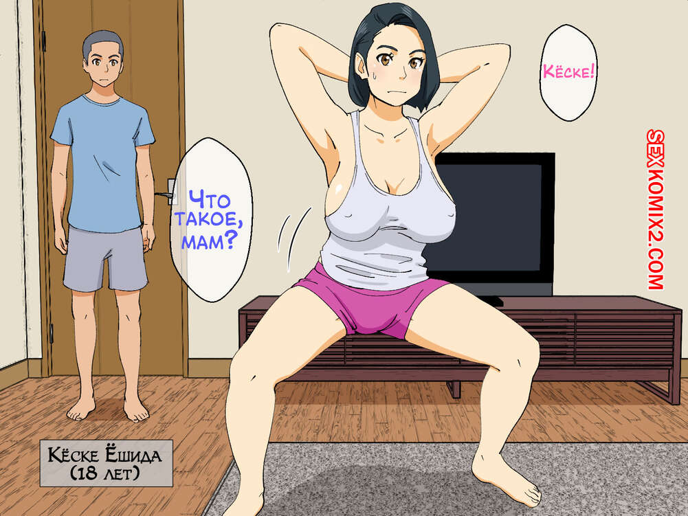 Порно комикс Ты не должен делать это с мамой. Yaresou de Yarenai Kaasan Сисястая милфа брюнетка попросила сына помочь ей во время занятий йогой. Парень с радостью согласился, но очень возбудился. Красотка это заметила и решили ему помочь расслабиться. Она отсосала его большой хуй и дала пареньку себя выебать.