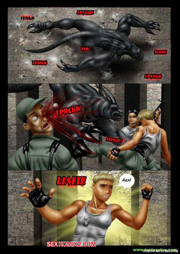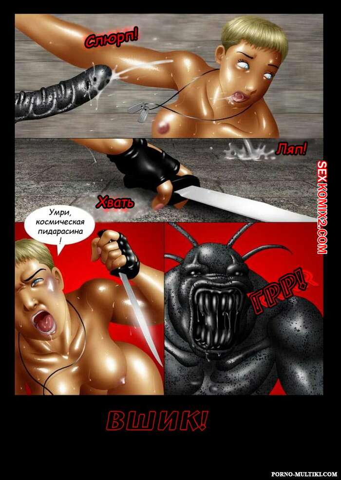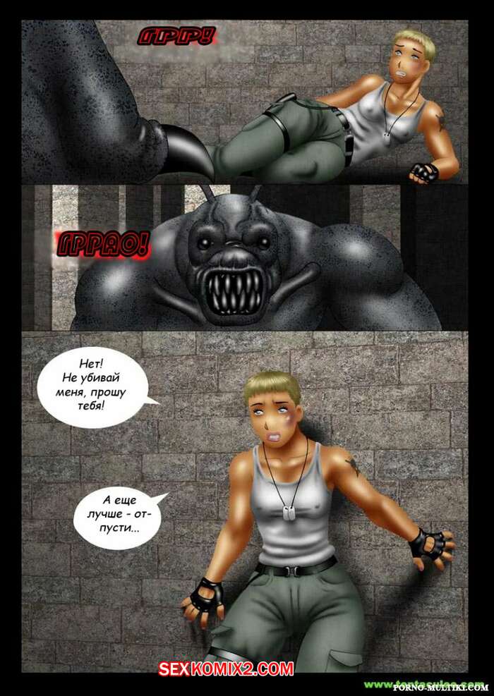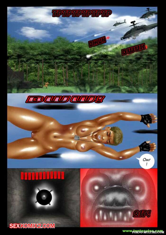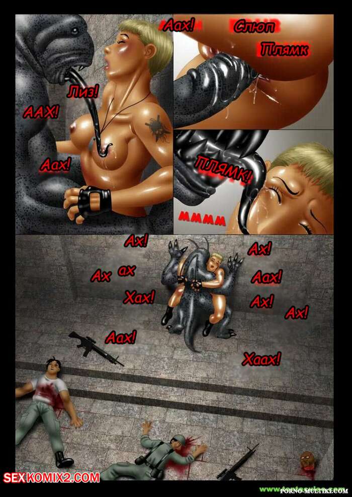 Порно комикс Ацтекский монстр насилует девушку солдата Монстр убил всех мужиков в военной группе и оставил только девушку блондинку. Он раздел сучку и стал ее трахать в рот своим большим хуем, после чего хорошенько ее выебал и обкончал ее.