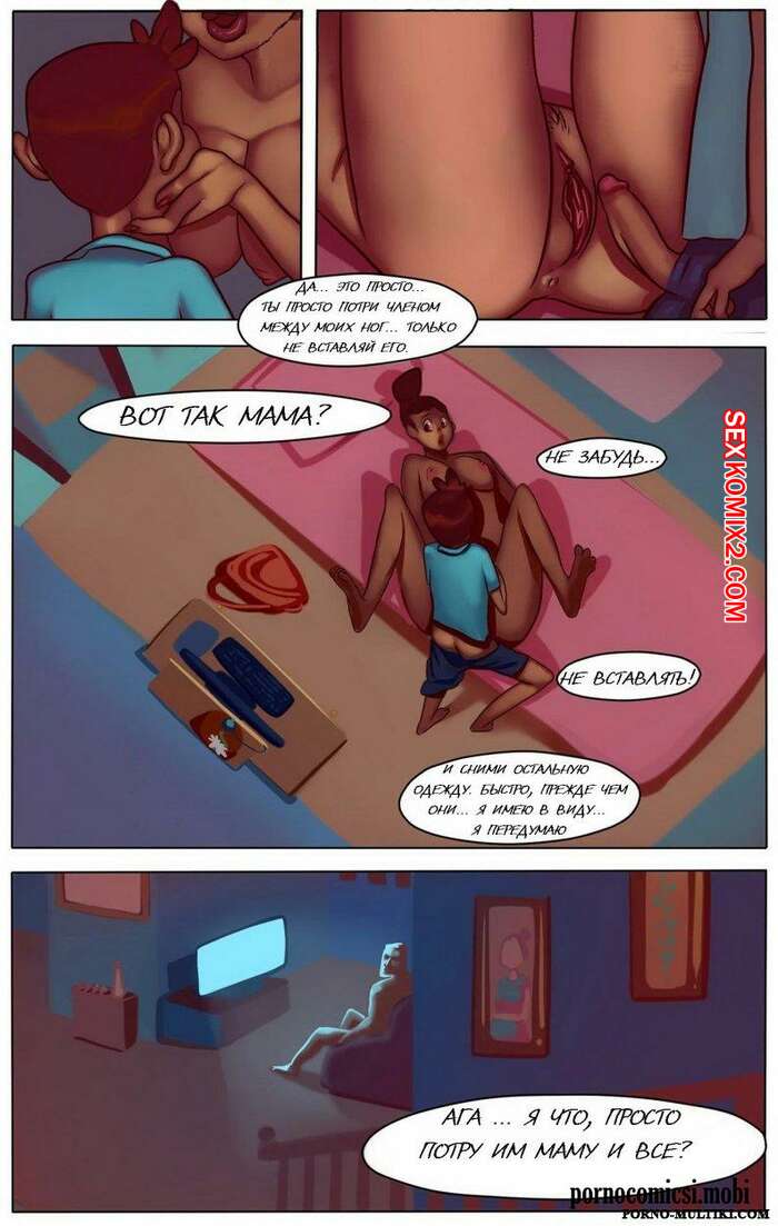 Порно комикс Мамино вебшоу Сисястая милфа брюнетка решила устроить веб кам шоу, но фанаты требовали большего. Милфа позвала своего сына и стала сосать его большой хуй, после чего дала ему себя хорошенько выебать.