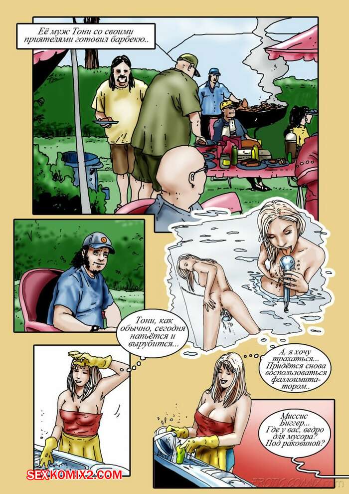 Порно комикс Барбекю Пока муж красотки жарил на улице барбекю, его жена решила повеселиться на кухне с его лучшим другом. Парень отлизал красотке пизденку, а затем хорошенько выебал ее своим большим хуем.