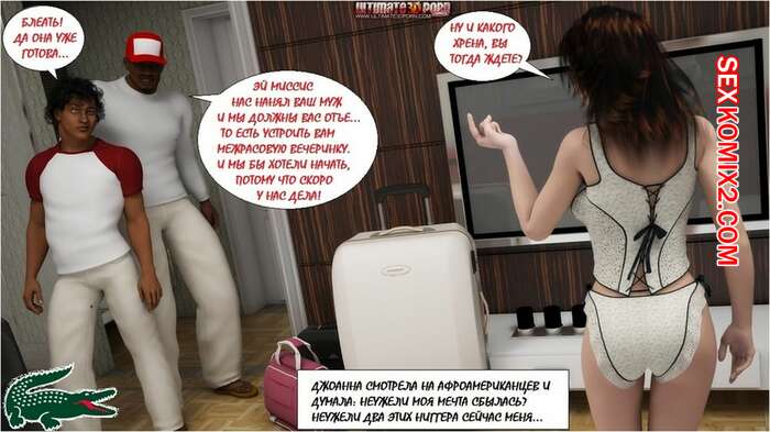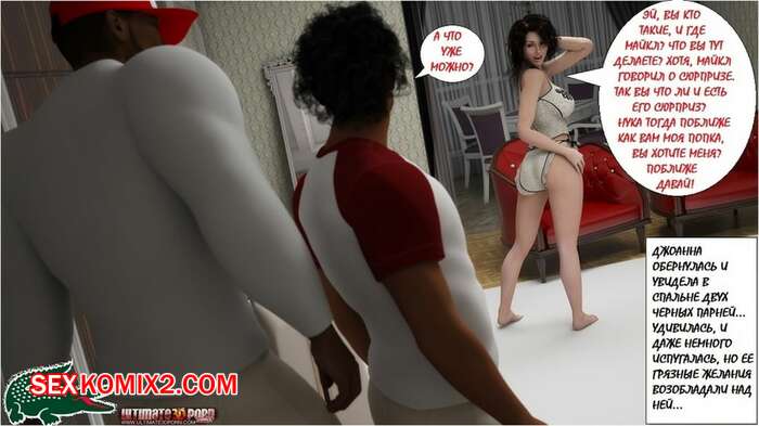 Порно комикс Сюрприз жене Мужик решил сделать сюрприз своей жене брюнетке. Он пригласил двух черных парней, которые раздели красотку и дали ей отсосать свои большие хуи, а затем хорошенько ее выебали на глазах мужа.