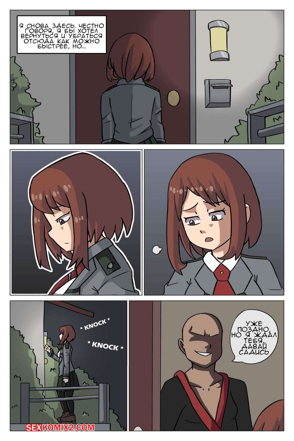 Порно комикс Академия. Темное наследие. Рыжеволосая девушка пришла в гости к своему учителю, мужчина встретил ее в одном кимоно, под которым на нем не было одежды. Девушка сразу поняла что будет секс и с радостью прошла в дом.