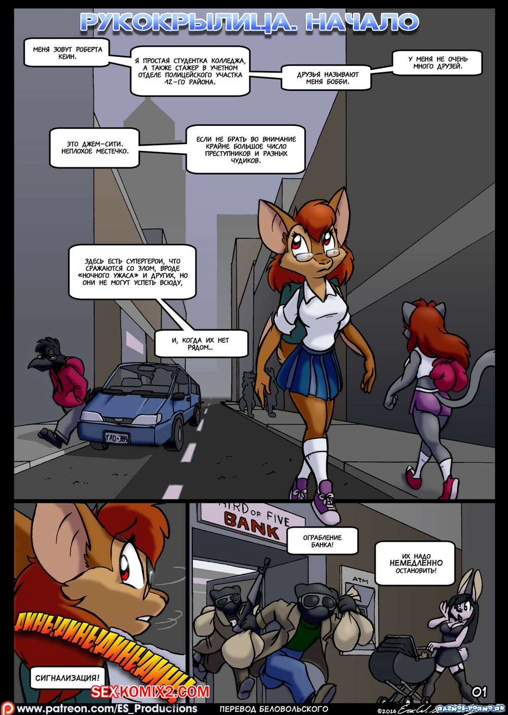 Порно комикс Рукокрылица. Начало. Трахнул супергероиню шантажом Горячая сисястая красотка брюнетка заметила грабителей, бегущих с банка. Она переоделась в свой супергеройский костюм в переулке, но ее спалил бомж, который хорошенько трахнул сучку.