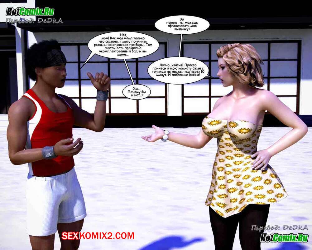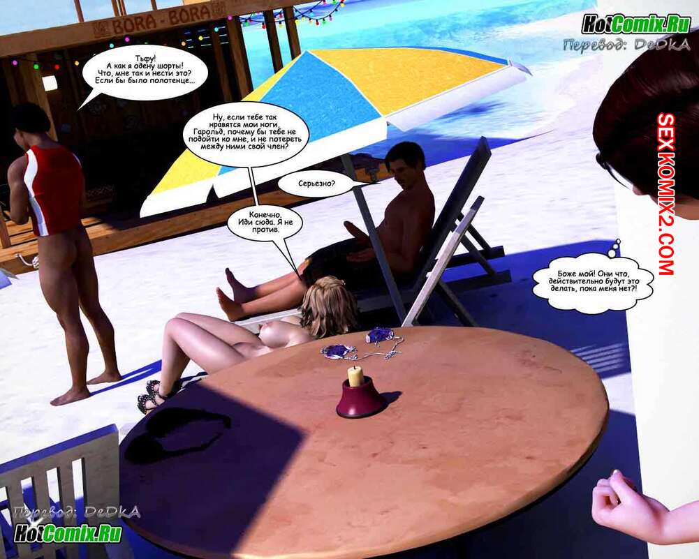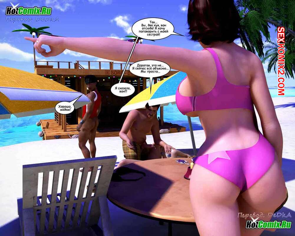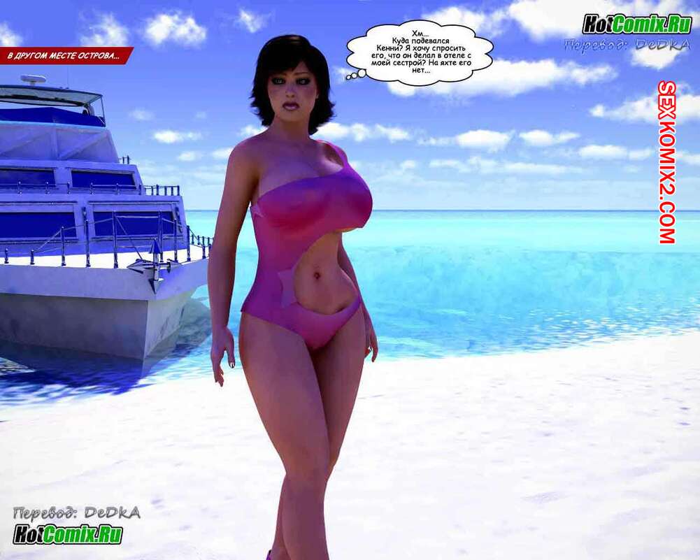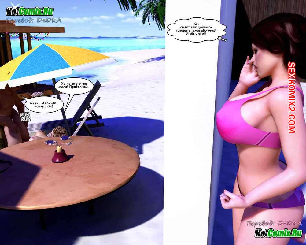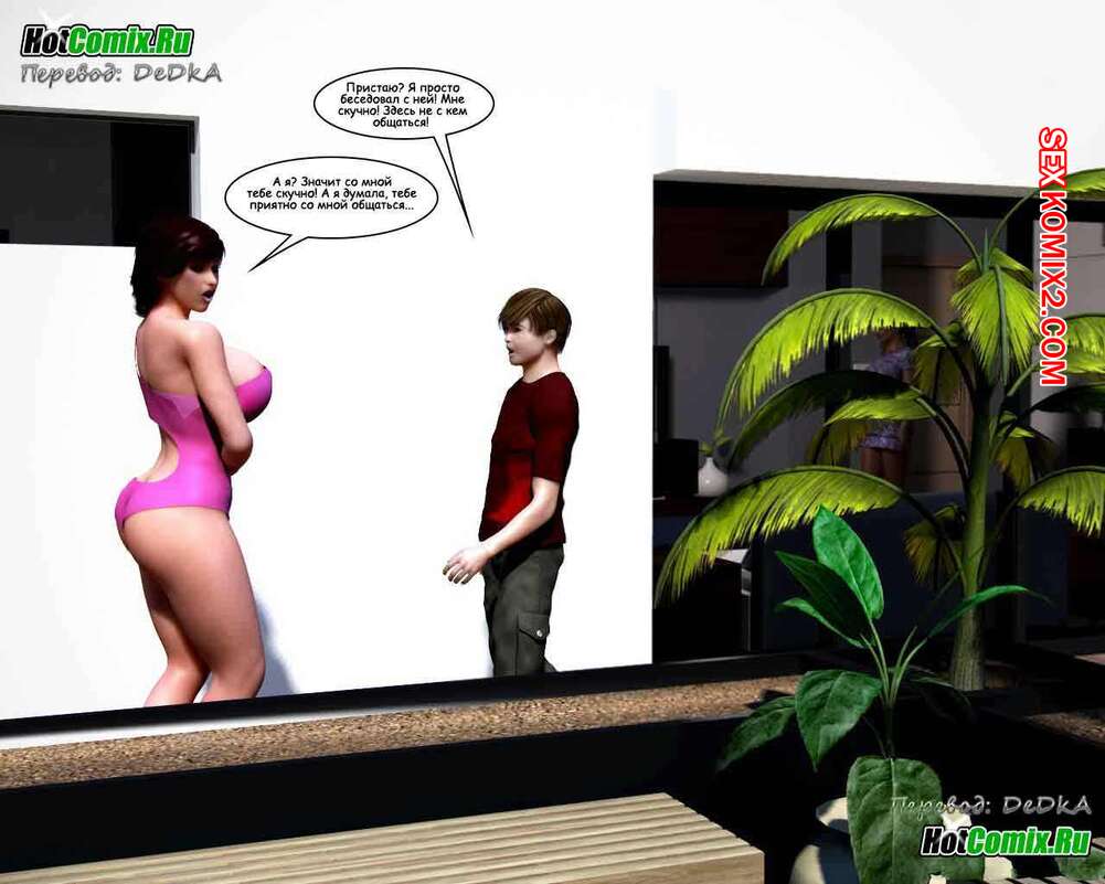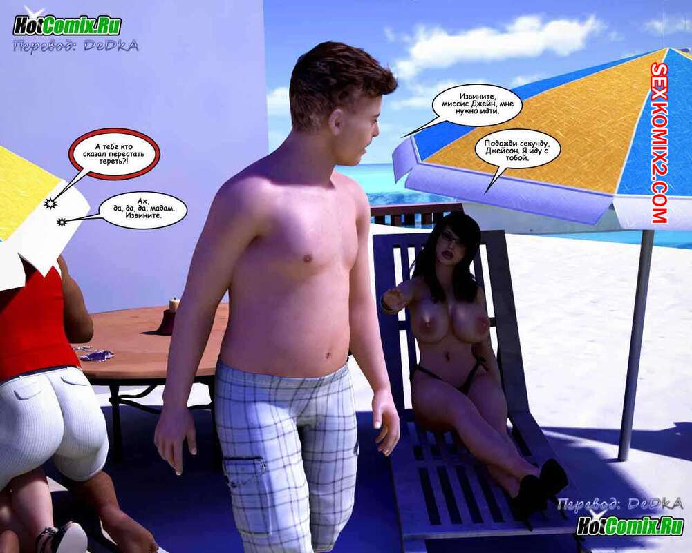 Порно комикс Кто это сделал Семейка уехала на остров, где милфа брюнетка решила повеселиться со своим сыном. Сучка уединилась с ним и стала сосать большой хуй сына, после чего дала ему себя хорошенько выебать.