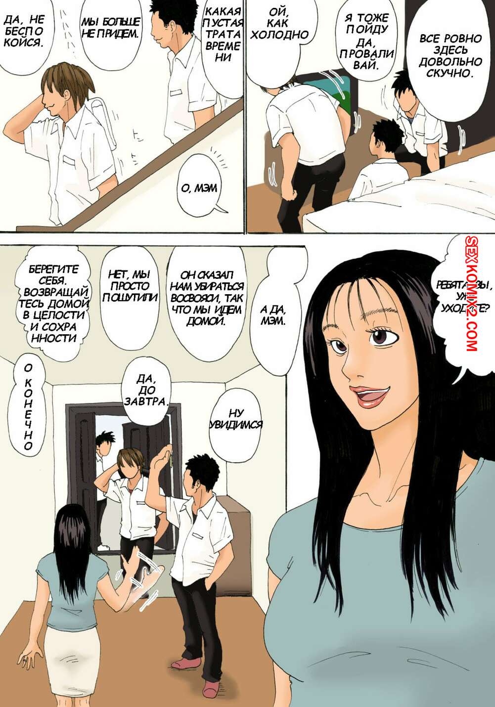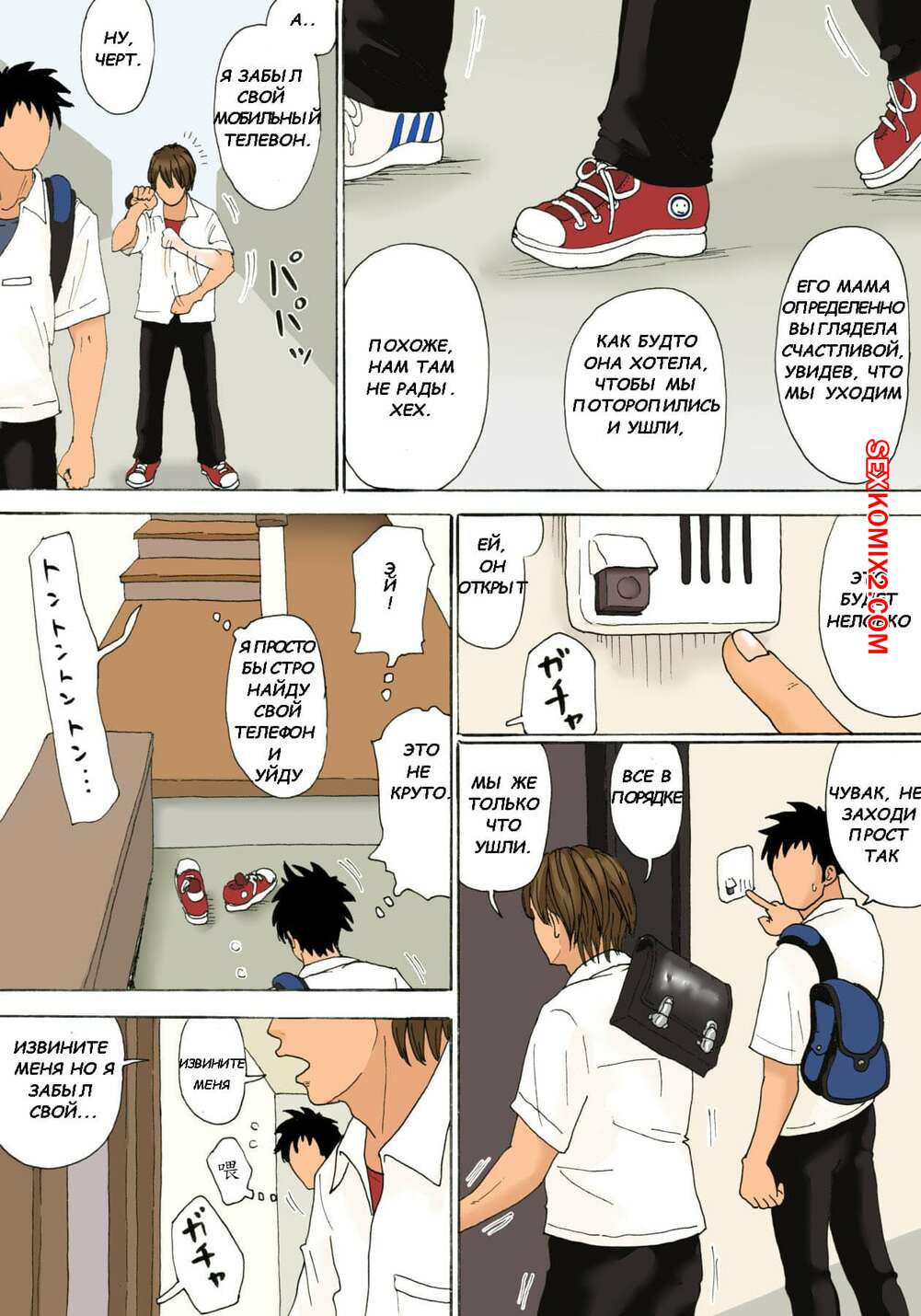 Порно комикс Даже то, что ее увидит друг сына, не остановит маму Горячая сисястая милфа брюнетка хотела трахаться, поэтому она накинулась на своего сына и стала скакать на его члене. Их застали друзья парня, но милфу это все равно не остановило.