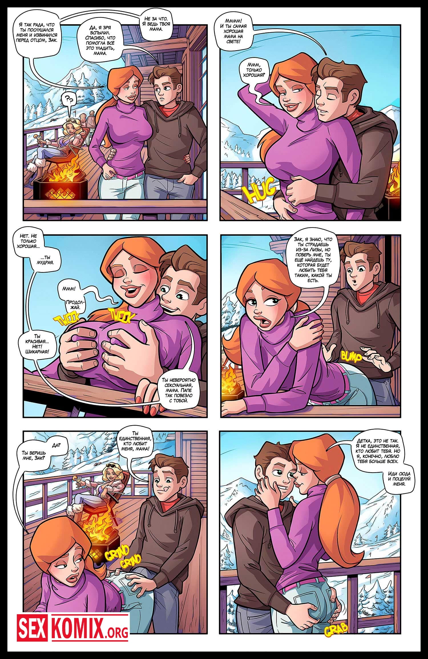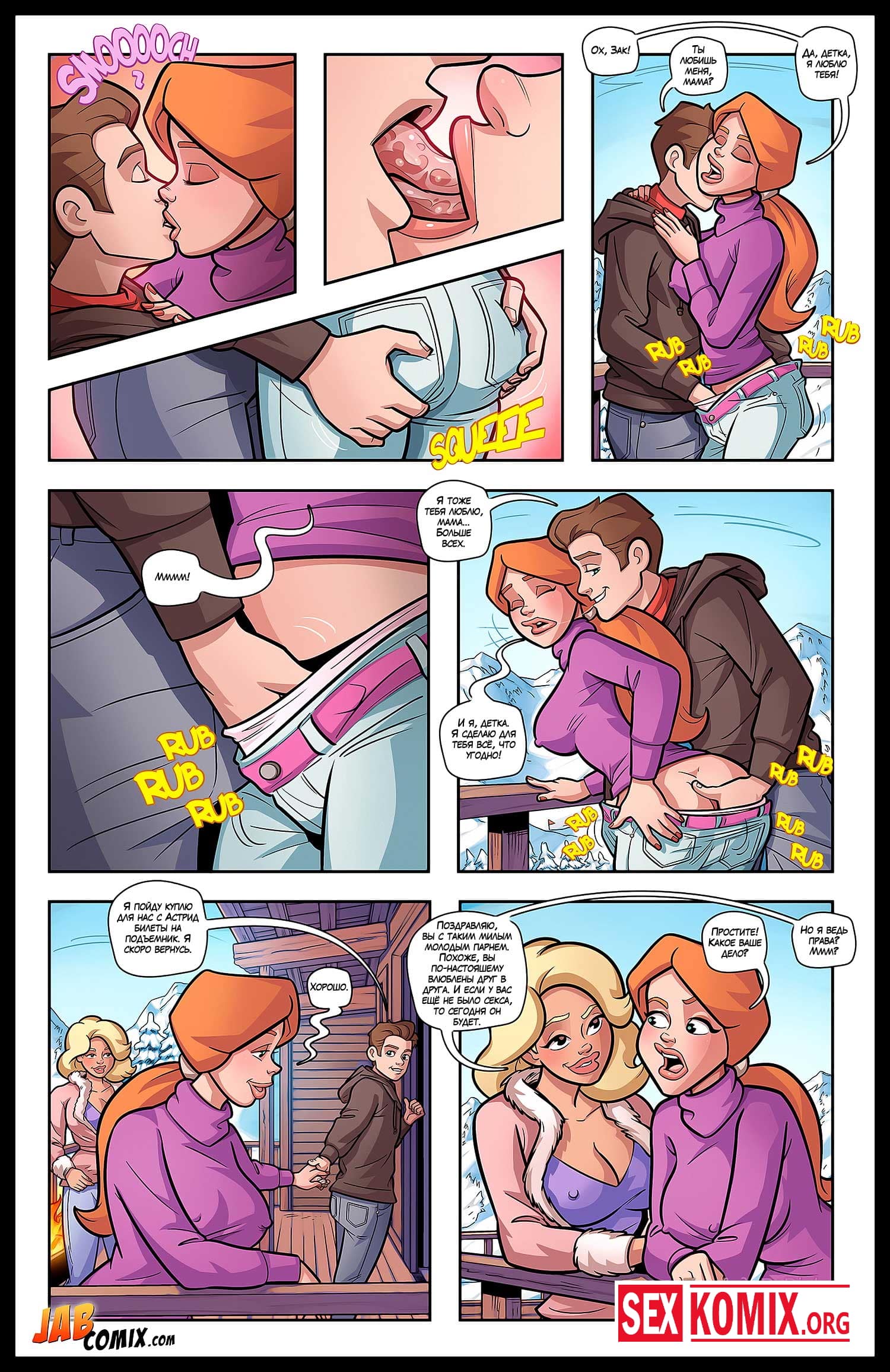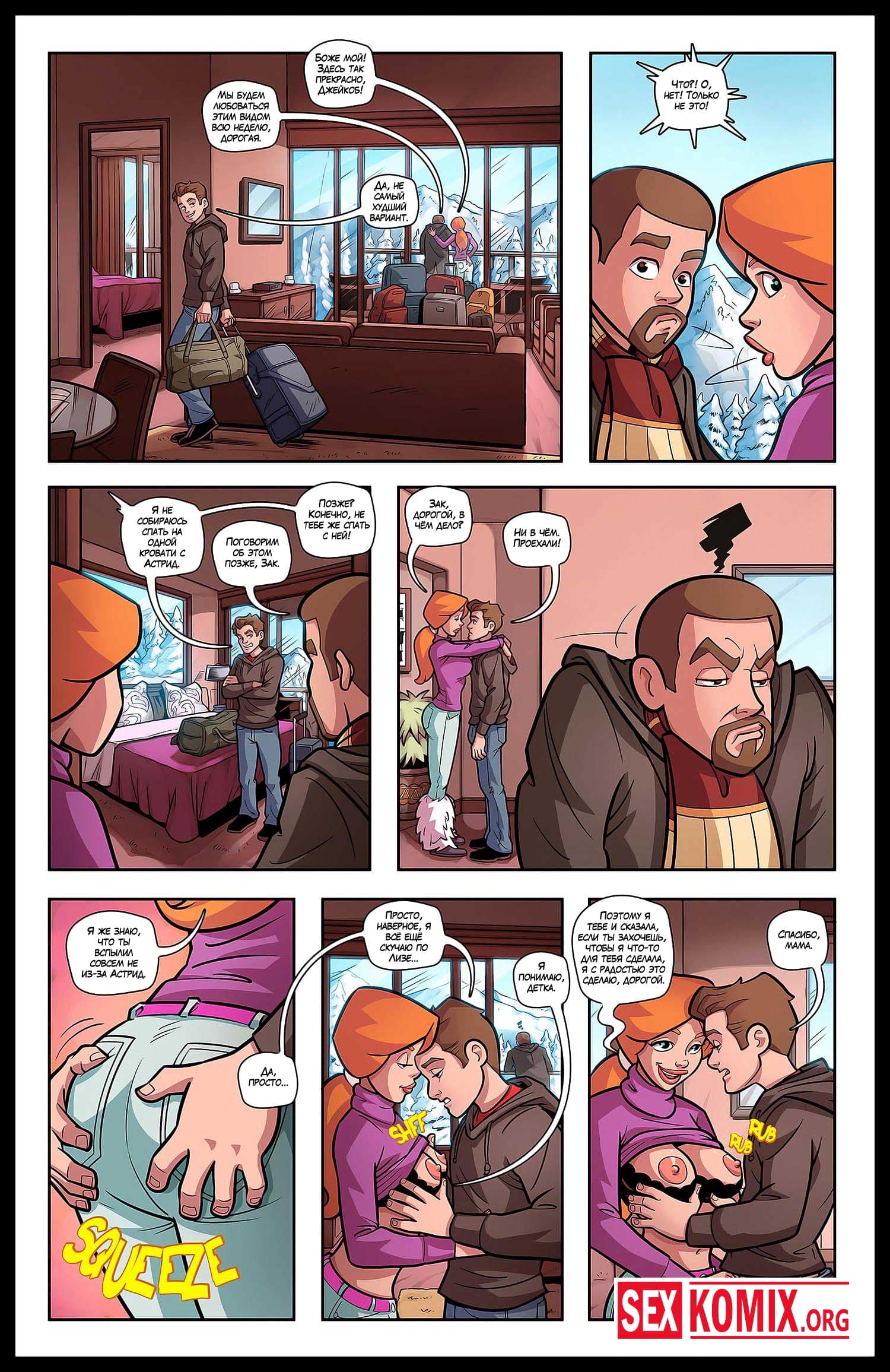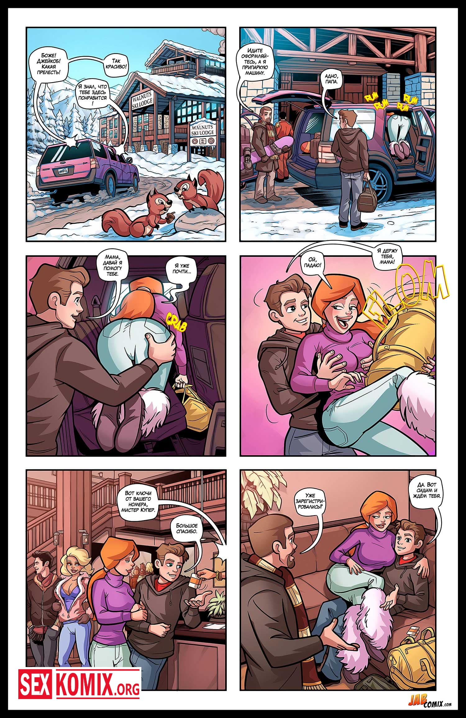 Порно комикс В снегах. Парень со своей сексуальной девушкой и лучшим другом поехал на зимний курорт в горы, чтобы покататься на лыжах. После нескольких дней катания на лыжах они поехали в магазин и застряли в снегу у дороги. Парень отправился за помощью, а его девушка и друг остались вместе в машине, чтобы согреться они прижались друг к друга. От прикосновения появилось возбуждение, желание захлестнуло их и они занялись сексом.