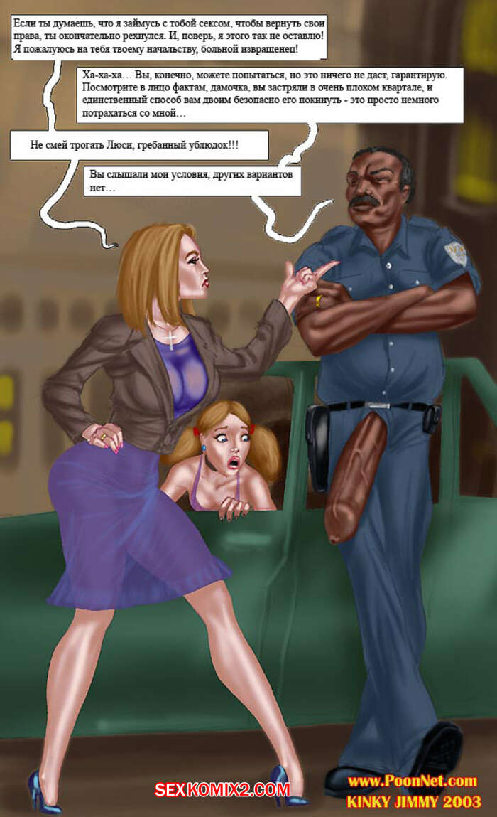 Порно комикс Превышение скорости. Poonnet Две горячие краостки превысили скорость и их остановил чернокожий полицейский. Он предложил девушкам решить вопрос на месте и достал свой большой хуй, чтобы сучки его отсосали и он их выебал.