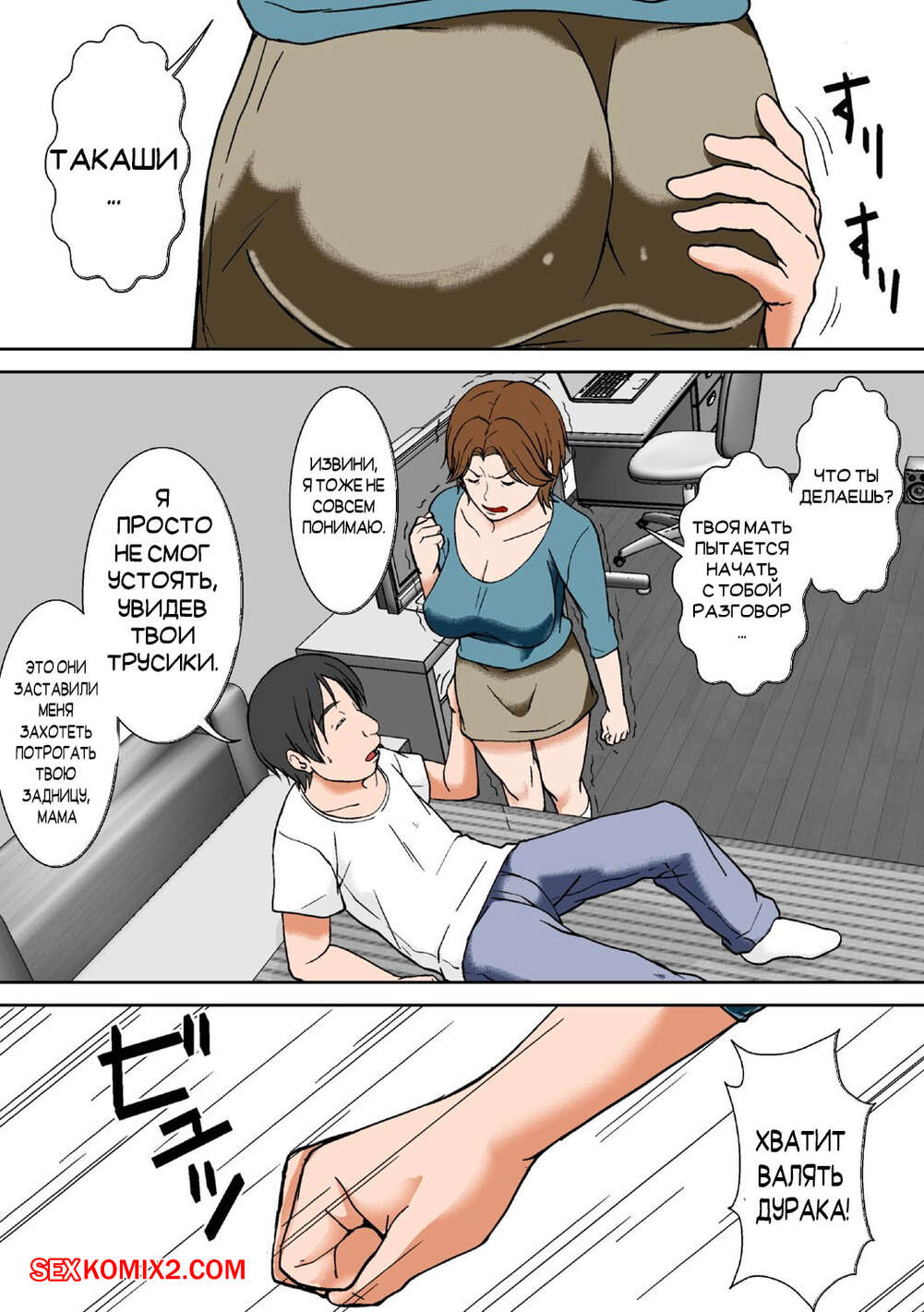 Порно комикс Ты пытаешься заняться сексом со своей матерью Парень возбудился при виде горячего тела своей мамки. Он стал ласкать ее и раздевать, после чего сучка не выдержала и стала сосать большой хуй сына, а затем дала ему себя выебать.