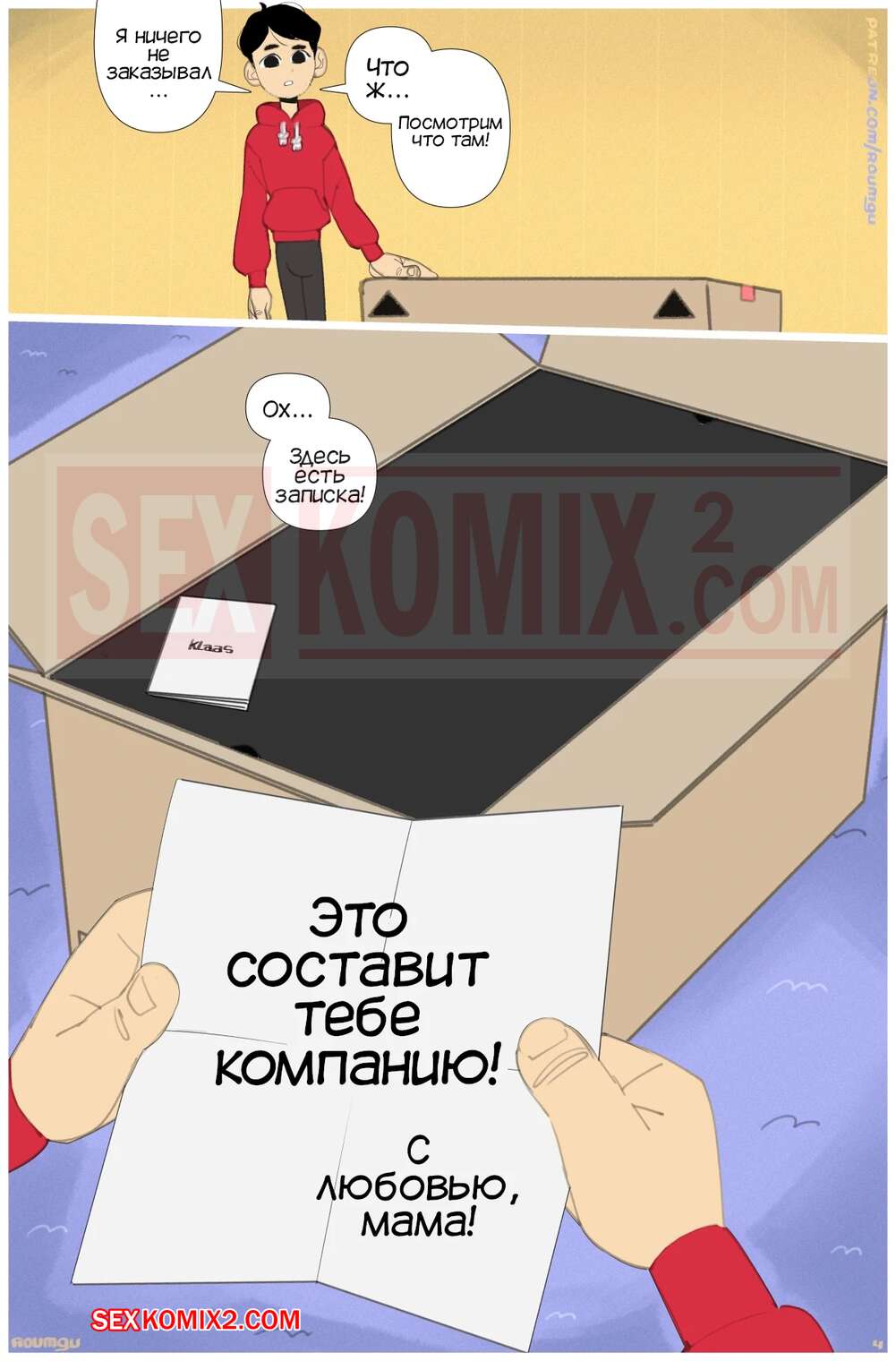 Порно комикс Кукла. DOLL. Roumgu Парню домой пришла большая посылка, которую ему отправила его мама. В ней он нашел сексуальную голую куклу. Парень наконец решил потерять девственность и воспользовался куклой как следует.