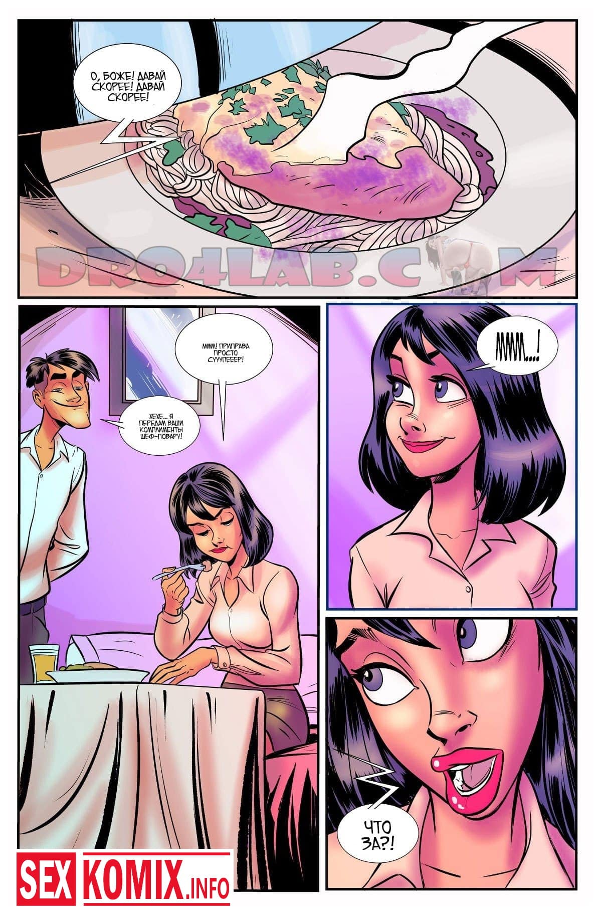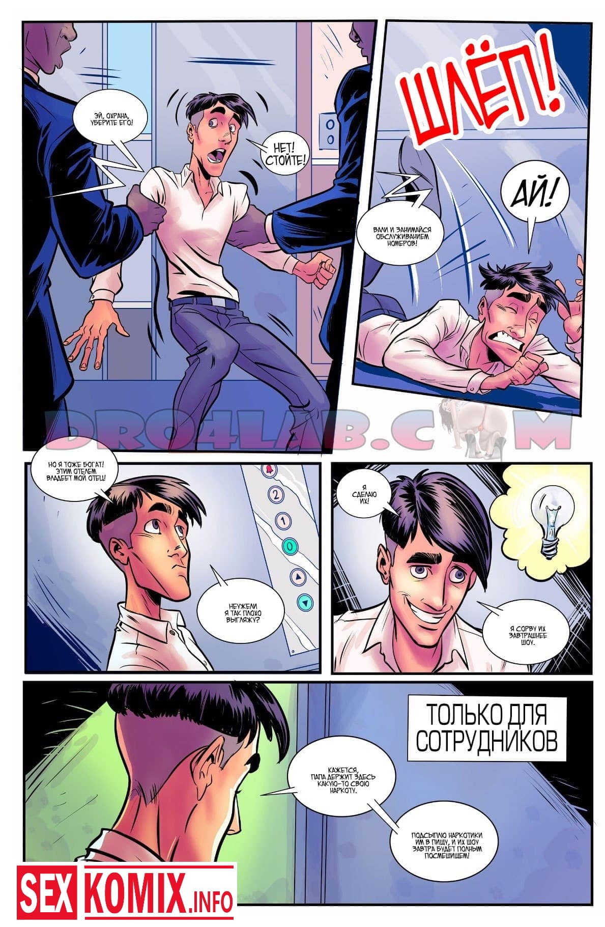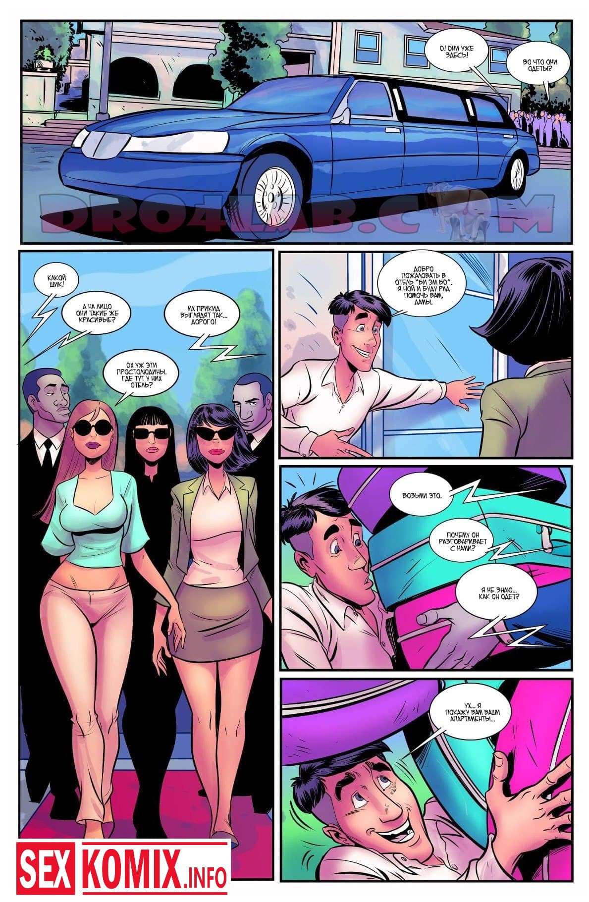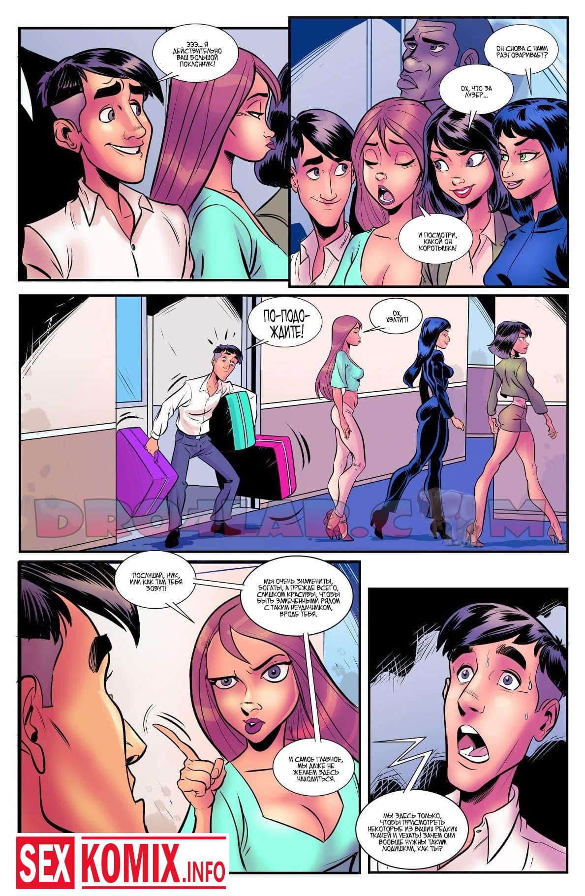 Порно комикс Шлюхи из мира моды. Часть 1. Большой фанат топ моделей часто ждем их у входа в клуб, чтобы посмотреть в живую на них. Сегодня вечером ему повезло, он смог проникнуть в раздевалку к одной из девушек, и распылили ей в лицо возбудитель, от него красотка вся потекла. Она готова отдаться любому, но позже девушка заметила, что её сиськи сино выросли в размере.