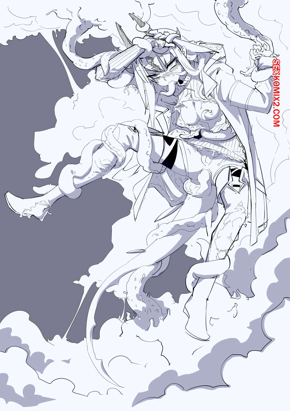 Порно комикс Совершенно секретный файл. Время щупалец Горячая сисястая блондинка была схвачена монстром с множеством щупалец. Оно раздело красотку и стало ласкать ее сиськи, после чего хорошенько трахнуло девушку во все ее дырочки.