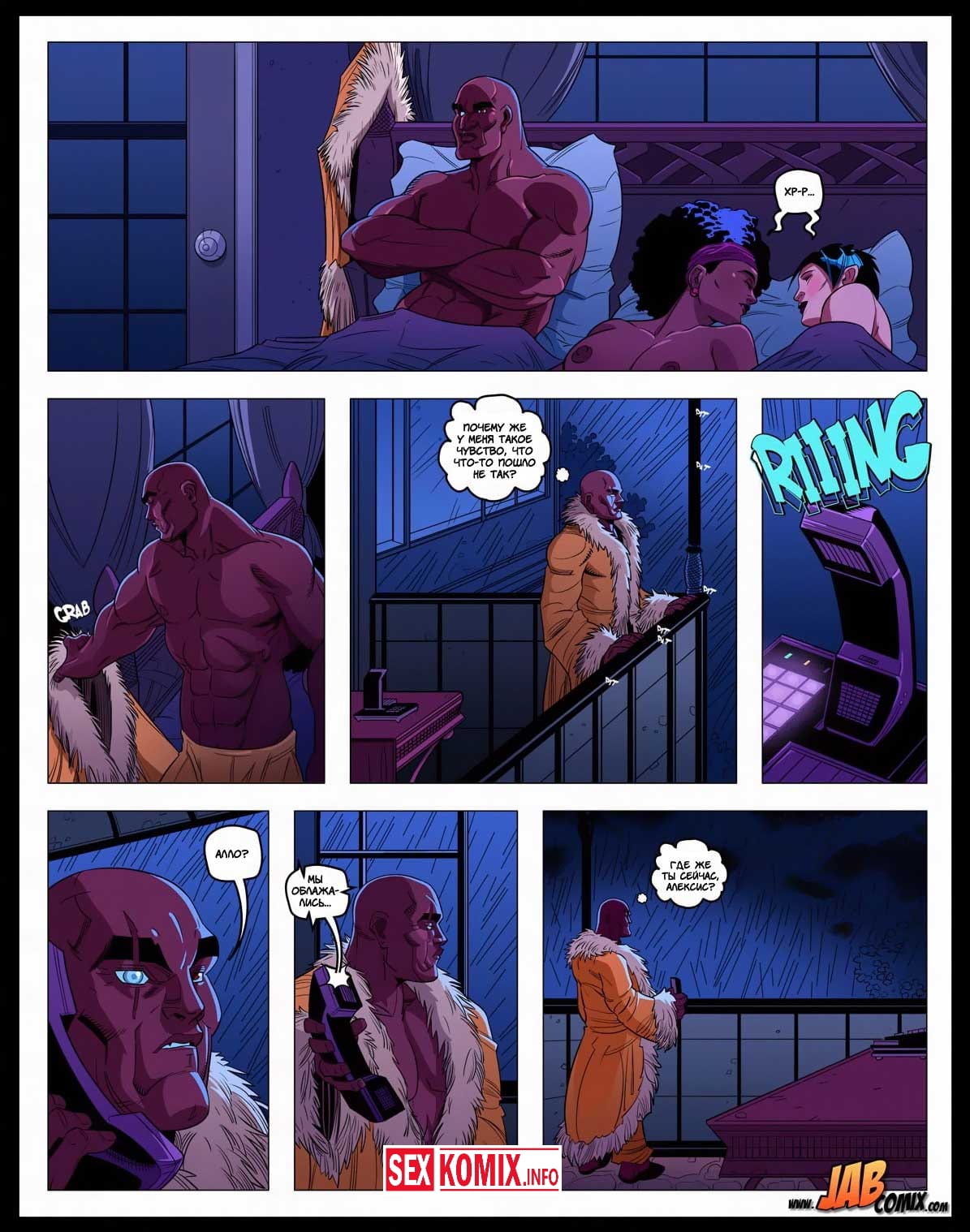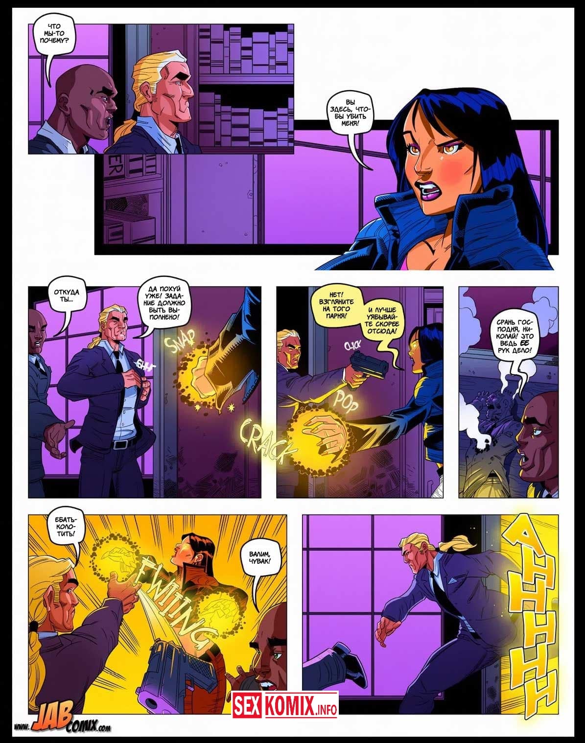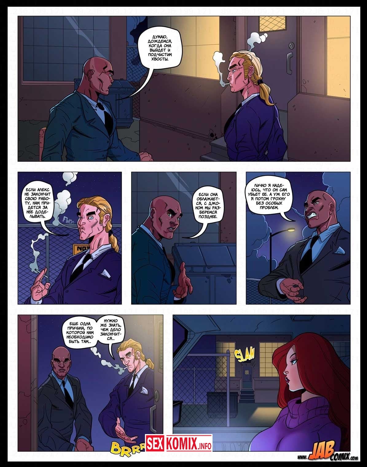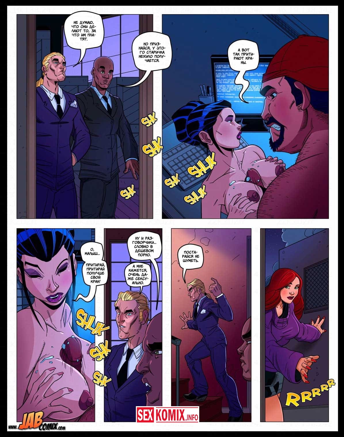 Порно комикс Мега. Часть 4. Девушка по имени Алекс получила новое задание, она должна расправиться с новым боссом мафии, но она уже совсем устала от этого и хочет отдохнуть. В это в время её парень у себя дома встретился с любовницей, так как Алекс часто нет дома ему пришлось найти ей замену. И пока героиня делает свою работу, любовники трахаются за её спиной.